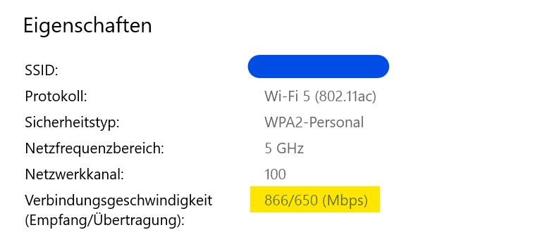 Allerdings zeigt mir Windows 10 bei der Verbindungsgeschwindigkeit bei Empfang und Übertragung (wer auch immer auf diese grandiose Übersetzung gekommen ist) unterschiedliche Werte an, nämlich 54 MBit/s für Empfang und 180 MBit/s für Übertragung. Die 180 MBit/s sind deutlich mehr als ich erwartet habe, weshalb ich damit sehr glücklich bin. Aber ich habe vorher noch nie ein Gerät gesehen wo die beiden Werte nicht identisch waren. Vor allem sind die 54 MBit/s Empfang in jedem Netzwerk gleich, also z.B. auch wenn ich einen Hotspot mit meinem Handy erstelle. Es macht mich auch ein bisschen stutzig dass das genau die maximale Bandbreite von 802.11g ist. Hat jemand eine Idee woran das liegen kann?