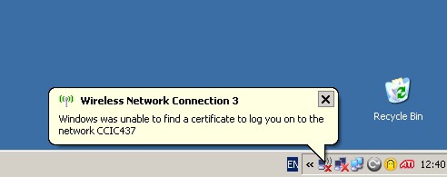 Jetzt habe ich das Problem, wenn ich einen USB-Wlan Stick anstecke (Allspot USB WLan) (am Windows XP Client), findet er das WPA-Wlan und verbindet sich mit einer gültigen IP. Aber ca. eine Sekunde soäter geht das WLan offline mit dem Hinweis, dass kein gültiges Zertifikat für den Router gefunden werden konnte.
