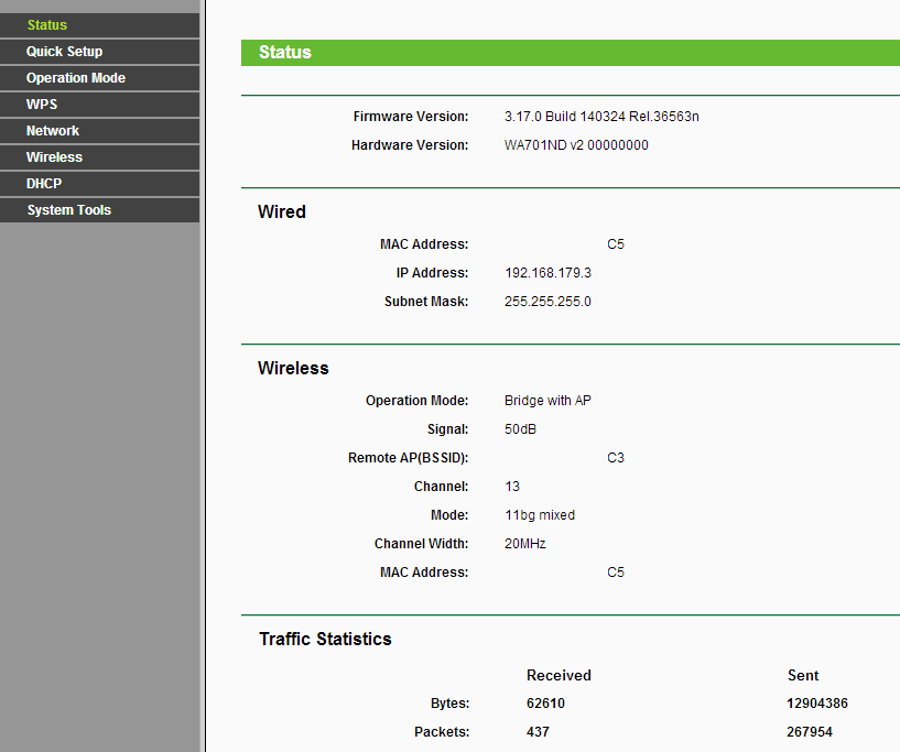 ich möchte zu einem ca. 50m entferntem Gebäude Internet übertragen. Dazu habe ich zwei TP-Link APs TL-WA701ND V2 mit jeweils einer TL-ANT2409B Antenne.