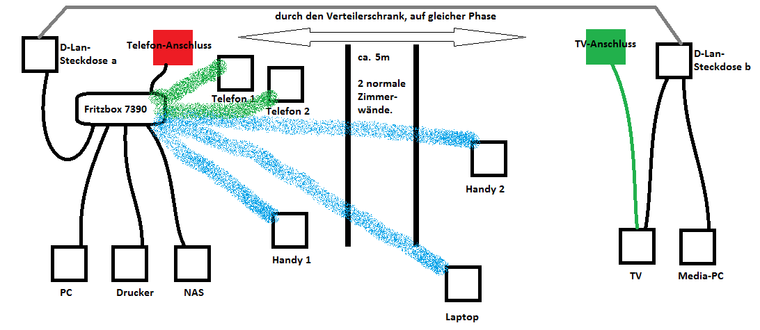 *Anmerkung d-LAN-Adapter: funktioniert bei uns sehr bescheiden. Streaming von 1080p ist nicht möglich. Soll aus dem Netzwerk entfernt werden.