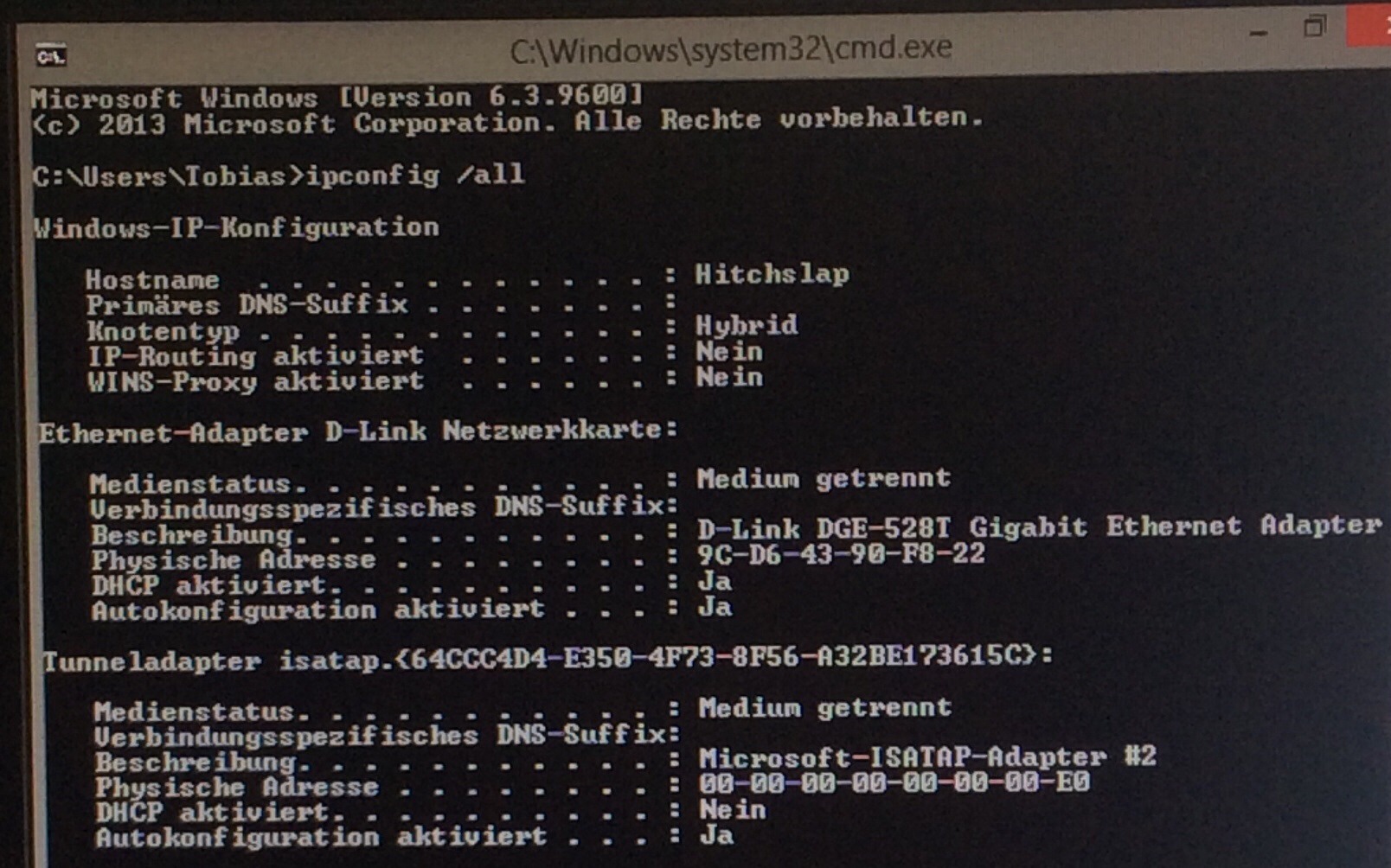 tja zu dem Bild, anscheinend kann die DLINK Netzwerkkarte keine IP automatisch vom Router beziehen