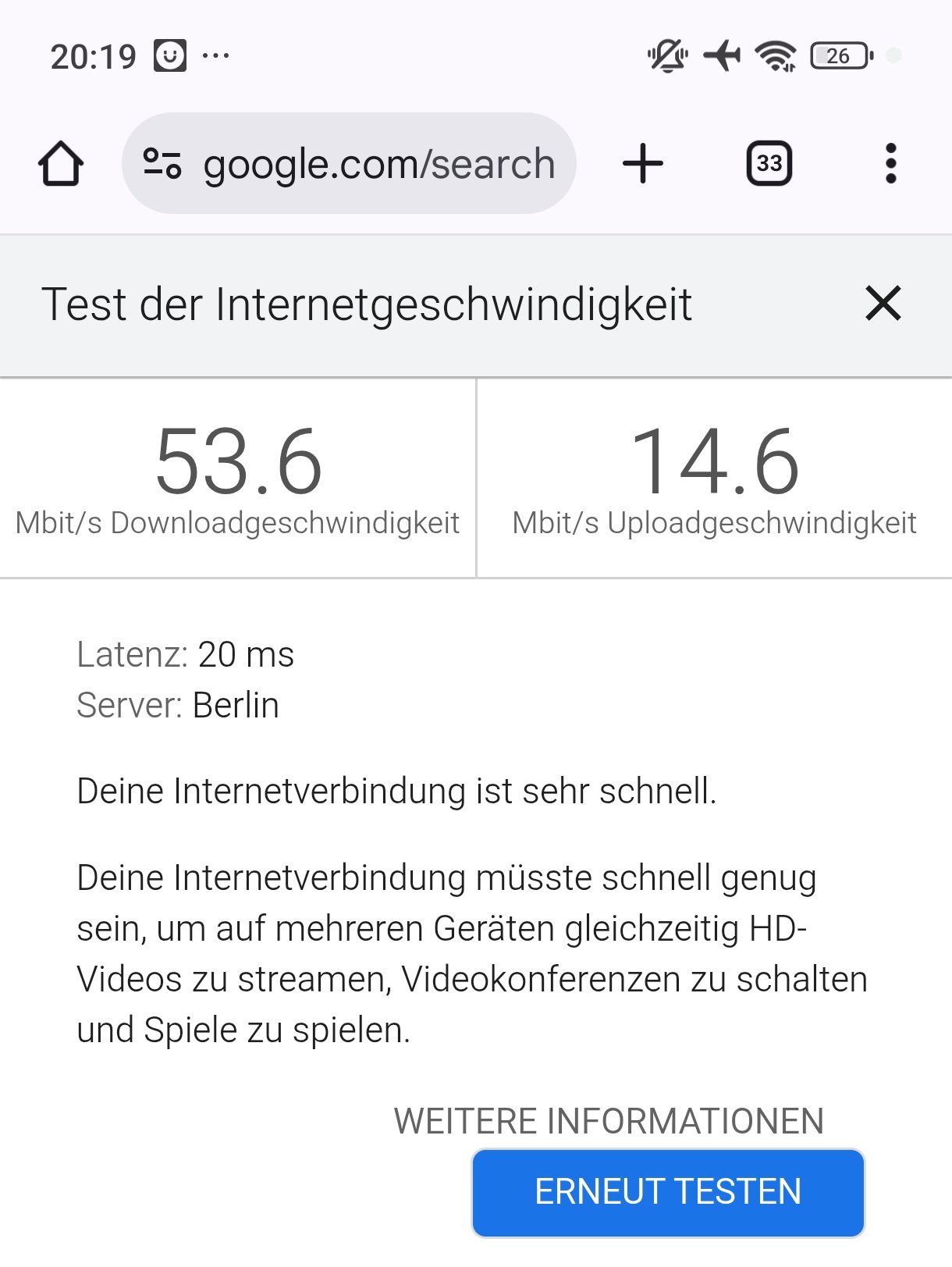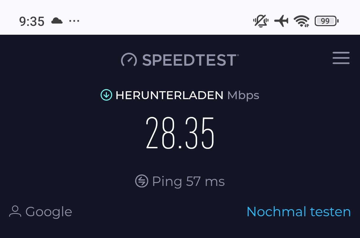 Nach Einrichtung ist mir aufgefallen, dass das Internet total langsam war. Also habe ich den Speedtest gemacht.