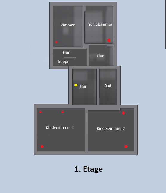 Bedeutet, dass ich in den Kinderzimmern, dem Büro im 1.Stock und der Küche gutes WLAN benötige und im 1.Stock im Büro (benannt Zimmer) ein Lankabel brauche.