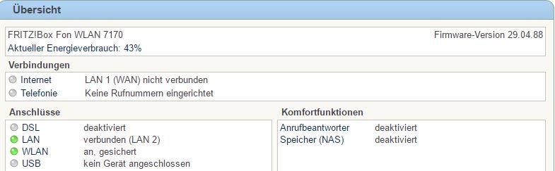 Ich habe die Box aktuell per Lan-Kabel am Ethernetanchluss angeschlossen (Lan1). Mein Rechner ist per WLAN mit der Box verbunden.