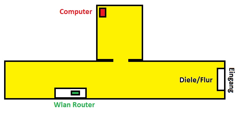 Der Router steht vom Computer 7 große Schritte entfernt.