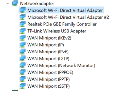 Von der neuen Karte ist leider nichts im Geräte-Manager zu sehen. (Der TP-Link ist mein USB-Wlan-Stick)