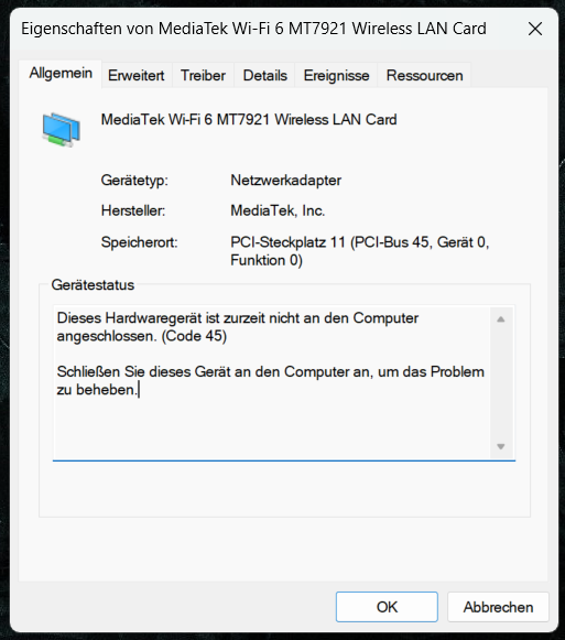 Ist der WLAN-Adapter nicht vorhanden oder wurde er lediglich vom Computer ausgeschaltet?DHC schrieb:@SuperHeinz