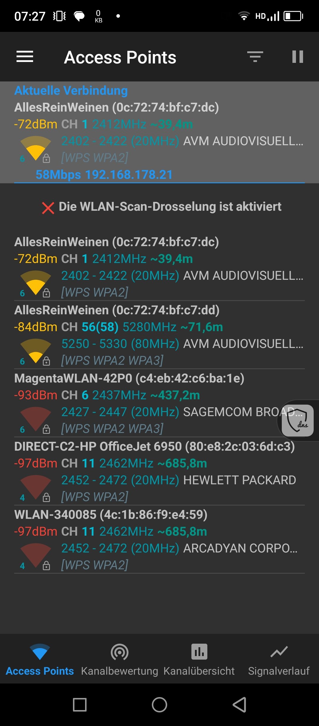 Hallo, ich habe seit längeren das Gefühl, dass irgendwas mit unserem Router nicht stimmt. Ich habe plötzlich ein ganz schwaches Signal und es läuft irgendwie unrund. Ich bin schon fast der Meinung, dass jemand drittes bei uns im Internet ist. Oder vielleicht irgendwelche accespoints installiert hat. Ich habe einfach mal mit mehreren ip Programmen, informationen gesammelt. Ich werde sie alle hochladen und hoffe irgendjemand blickt dadurch.