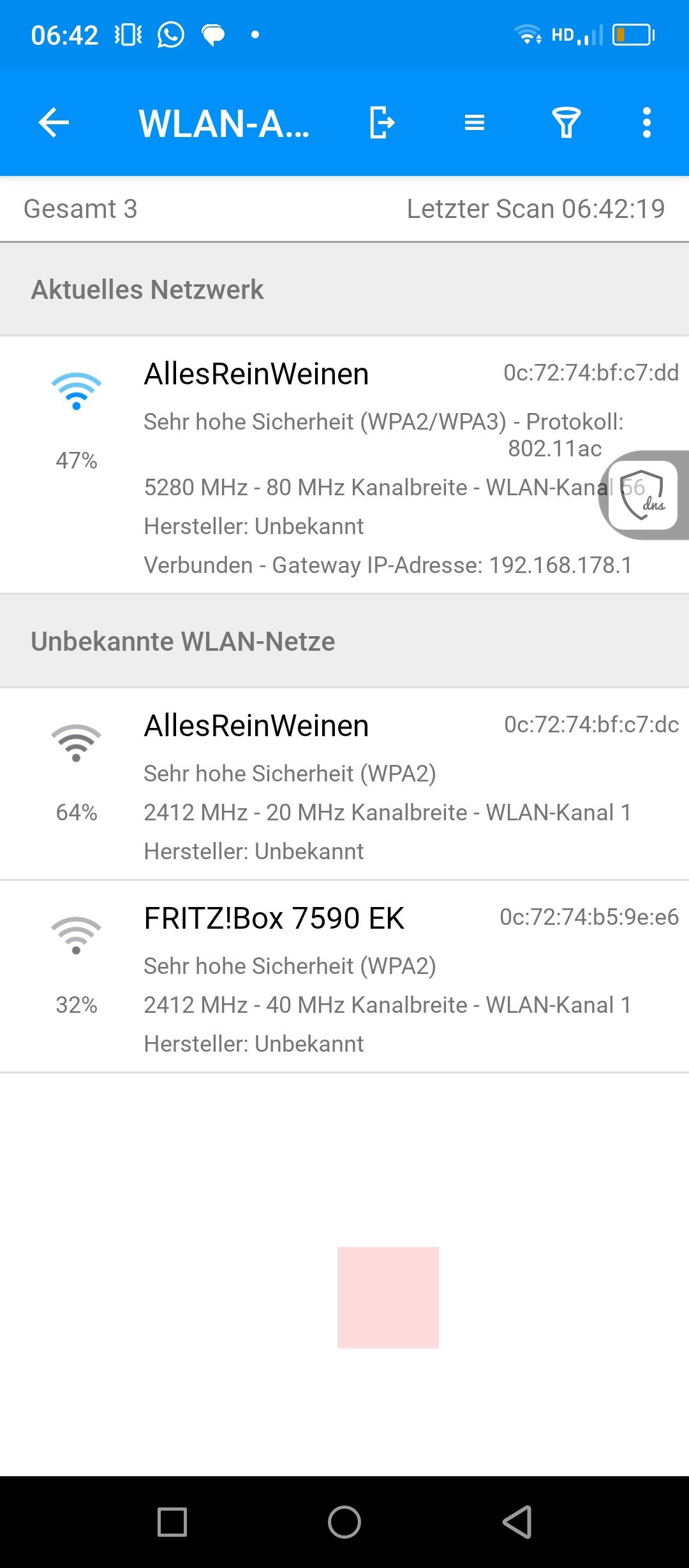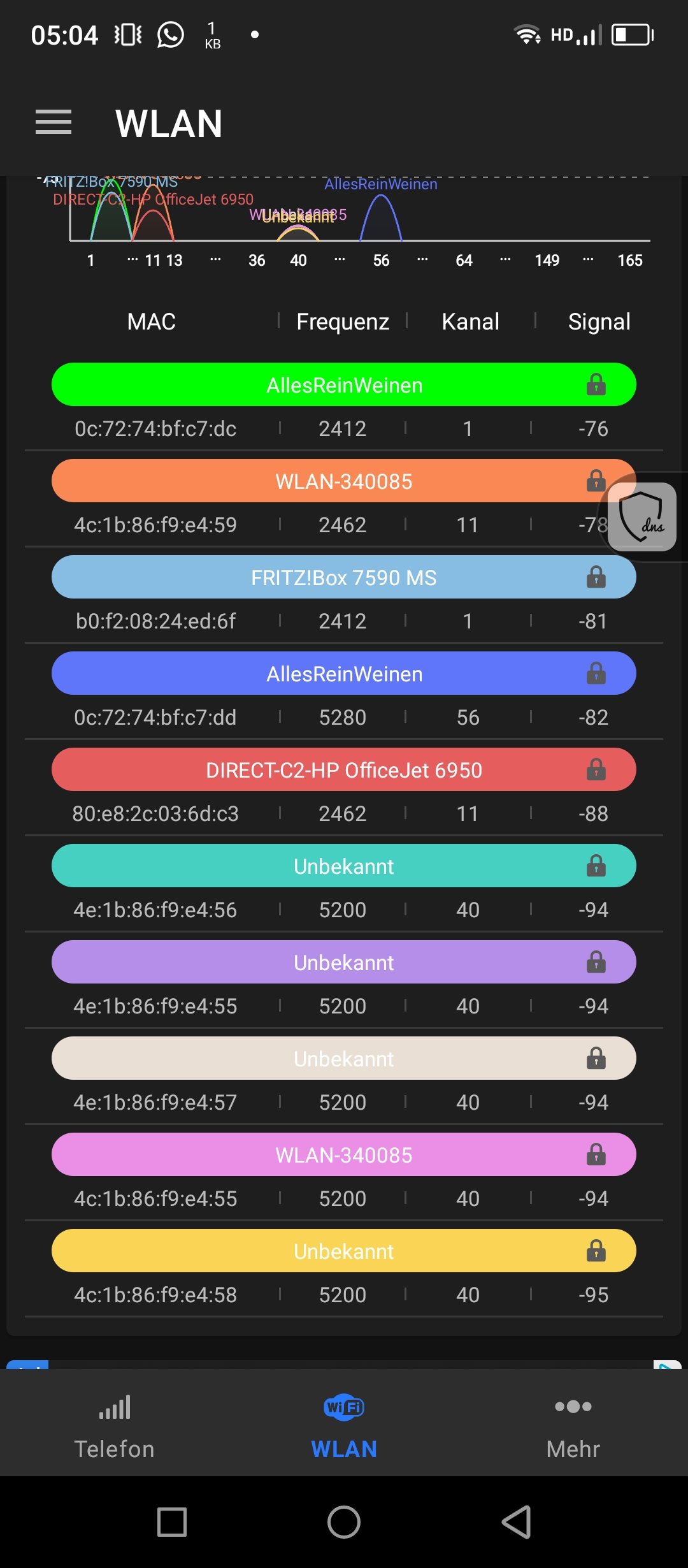 Hallo, ich habe seit längeren das Gefühl, dass irgendwas mit unserem Router nicht stimmt. Ich habe plötzlich ein ganz schwaches Signal und es läuft irgendwie unrund. Ich bin schon fast der Meinung, dass jemand drittes bei uns im Internet ist. Oder vielleicht irgendwelche accespoints installiert hat. Ich habe einfach mal mit mehreren ip Programmen, informationen gesammelt. Ich werde sie alle hochladen und hoffe irgendjemand blickt dadurch.