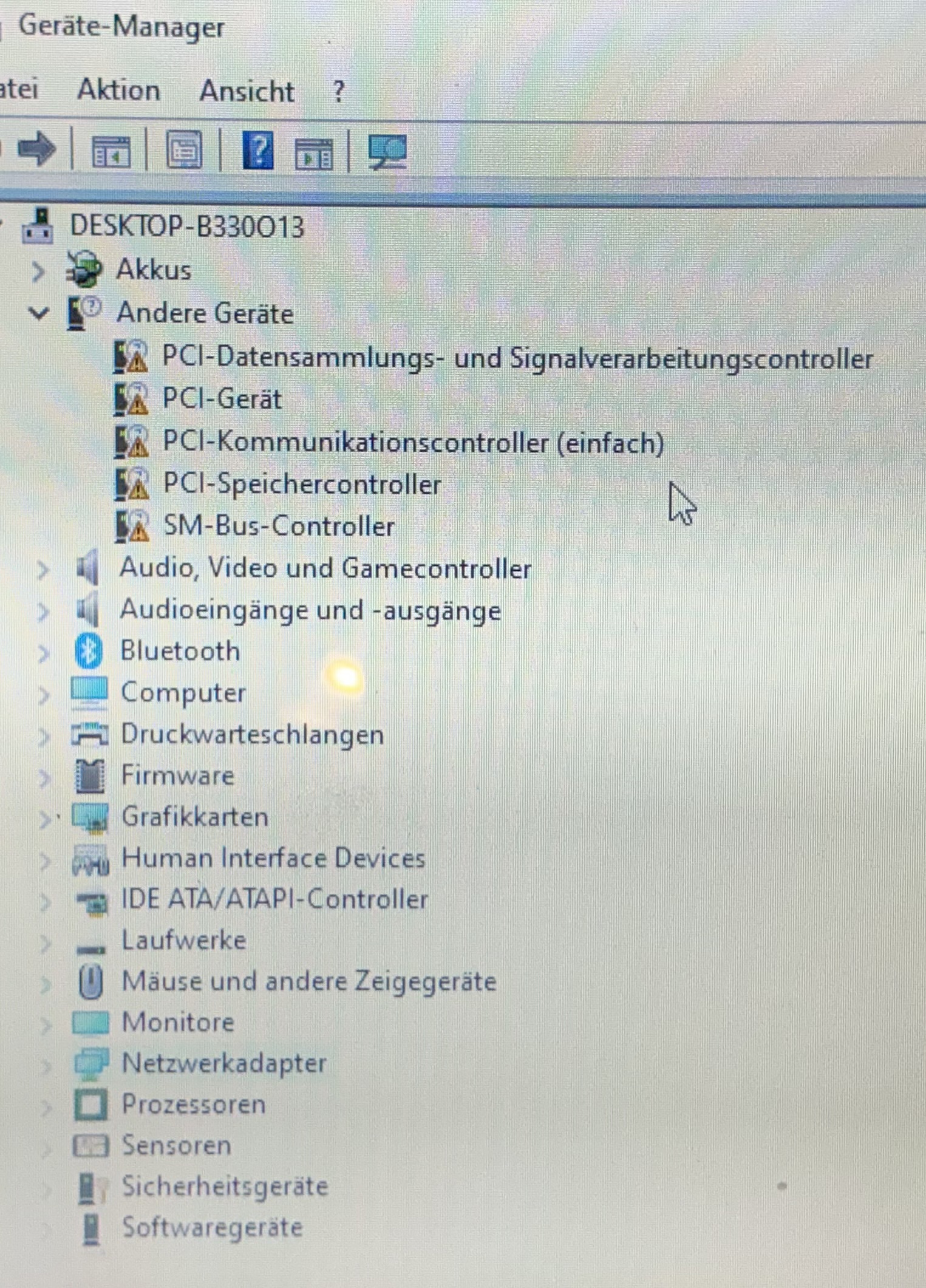 Habe dann einen R- Klick Maus gemacht …dann, nach geänderter Hartware suchen …dann hat er oben andere Geräte ausgeklappt und dies kam zum Vorschein …