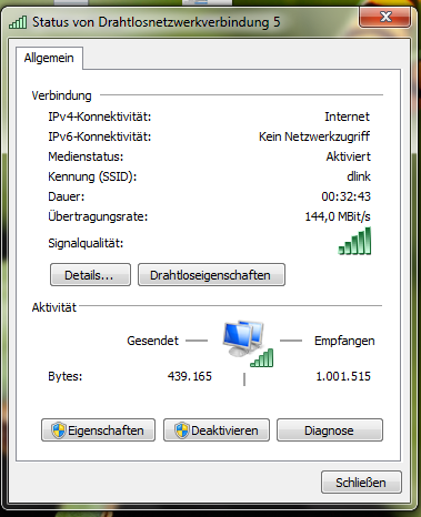 Windows zeigt bei optimaler Signalstärke 144 MBit/s an. Ist das Normal ?