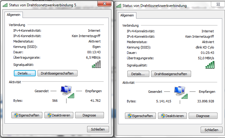 Hallo, ich habe einen Dlink Dir-615 Router 300 Mbit/s (Single Channel 2,5 GHz) mit Dlink DWA-140 300 Mbit/s Adapter Stick.