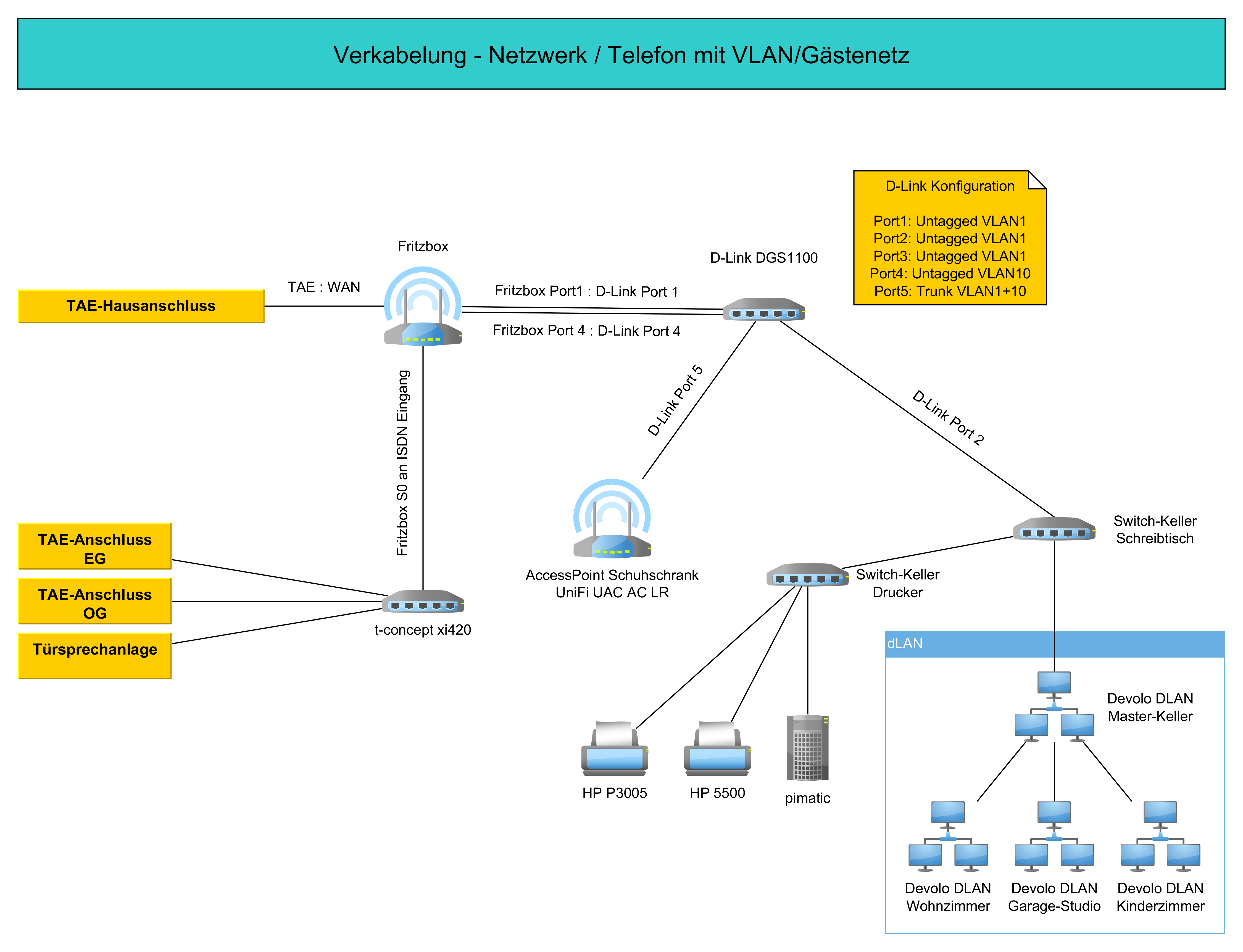 So habe ich das bei meine Eltern mit Gastnetz via VLAN realisiert. Inzwischen sinds noch 3 weitere AccessPoints