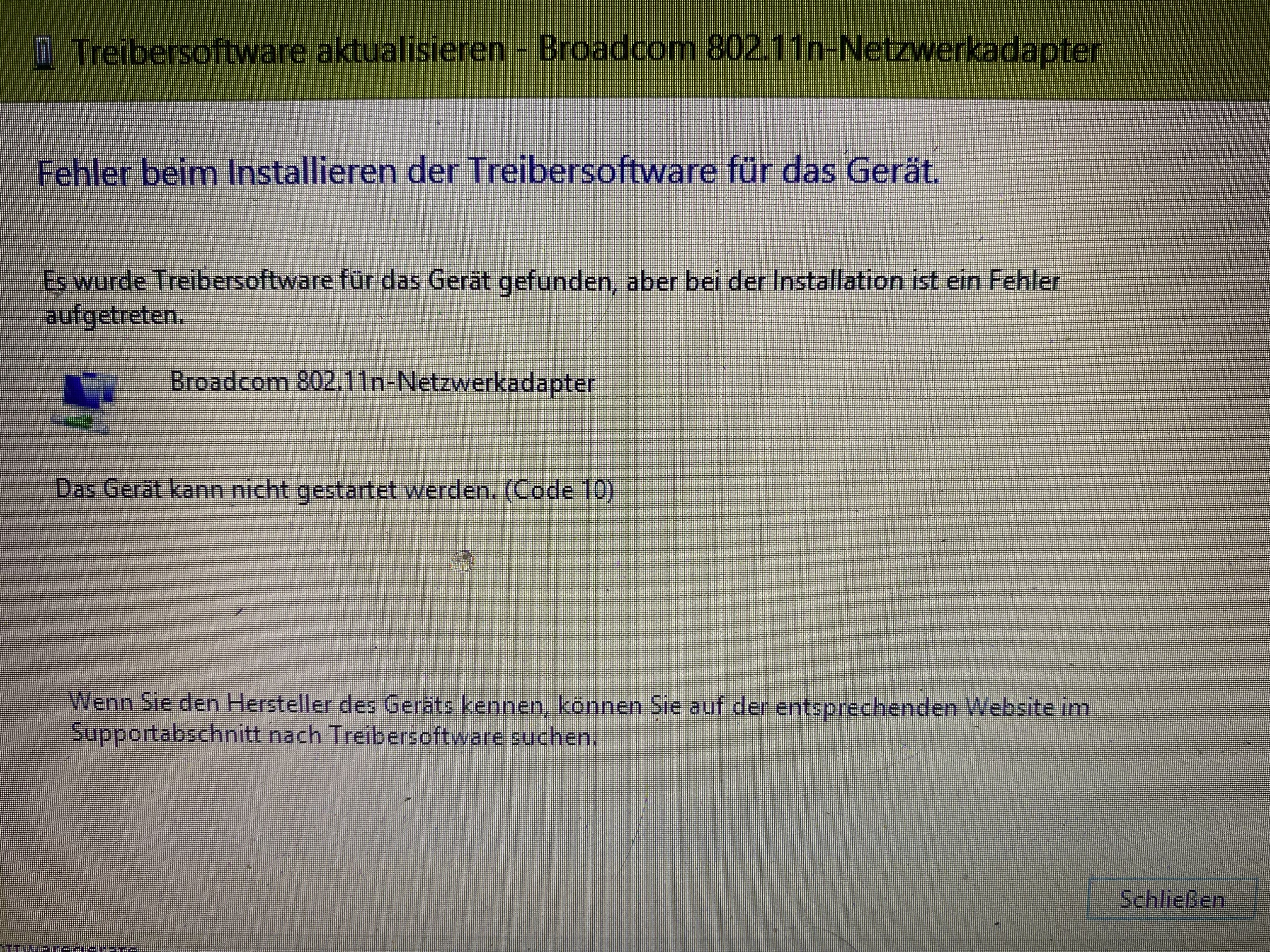 Bei der Ereignisanzeige steht als Fehler: „Broadcom 802.11n Netzwerkadapter: Fehlfunktion des Netzwerkadapters wurde ermittelt“