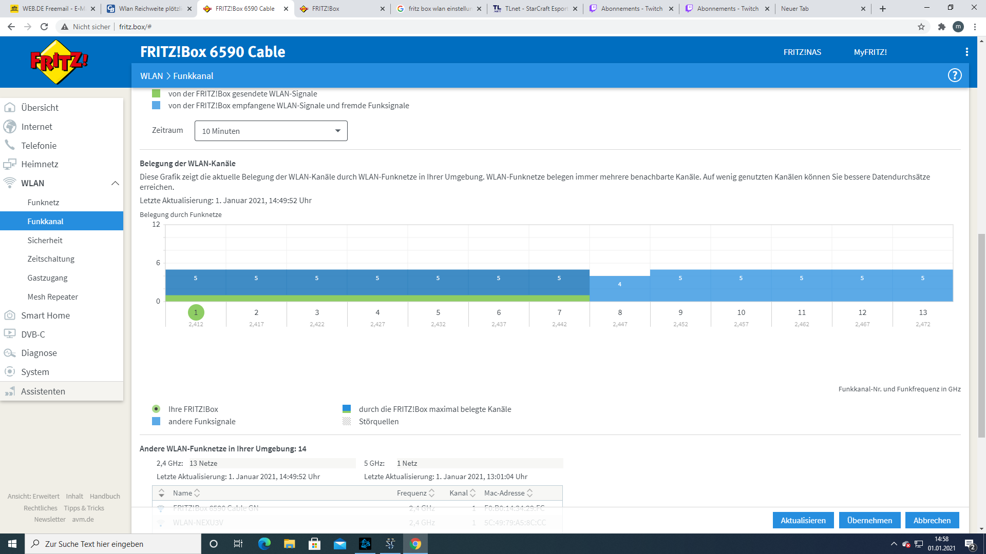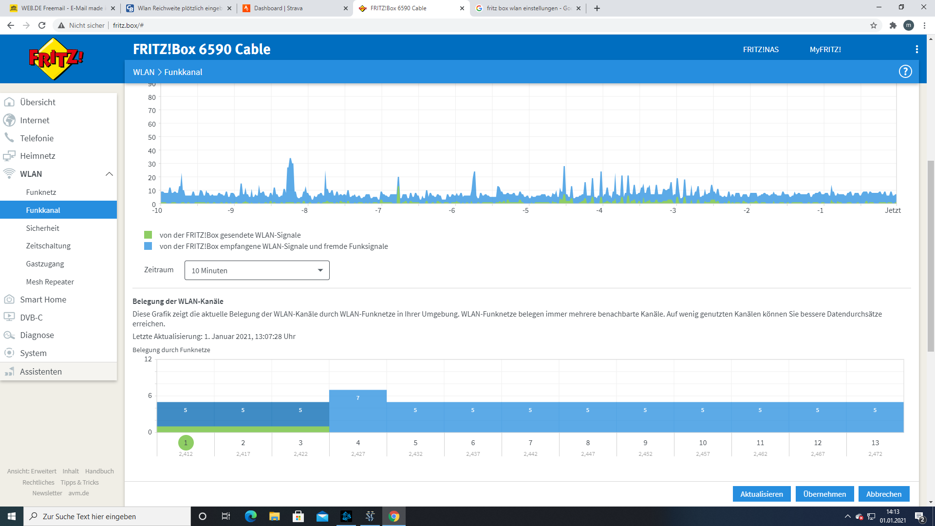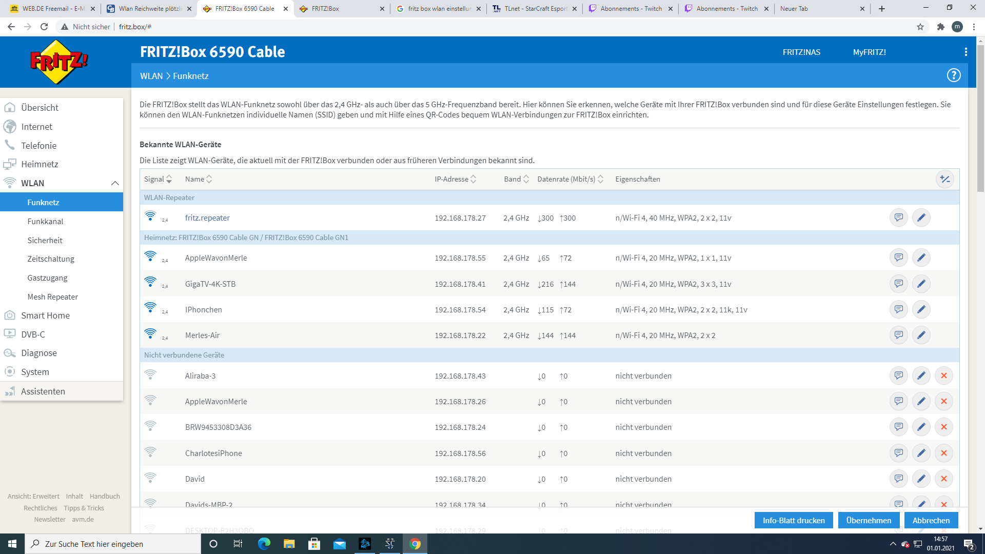 seit Gestern ist die Reichweite meines WLAN plötzlich stark eingebrochen. War nie ein Problem hat immer das ganze Haus ausgeleuchtet, seit Gestern reicht es plötzlich nurnoch für den Raum in dem der Router steht. (Ging 2 Jahre ohne Probleme)