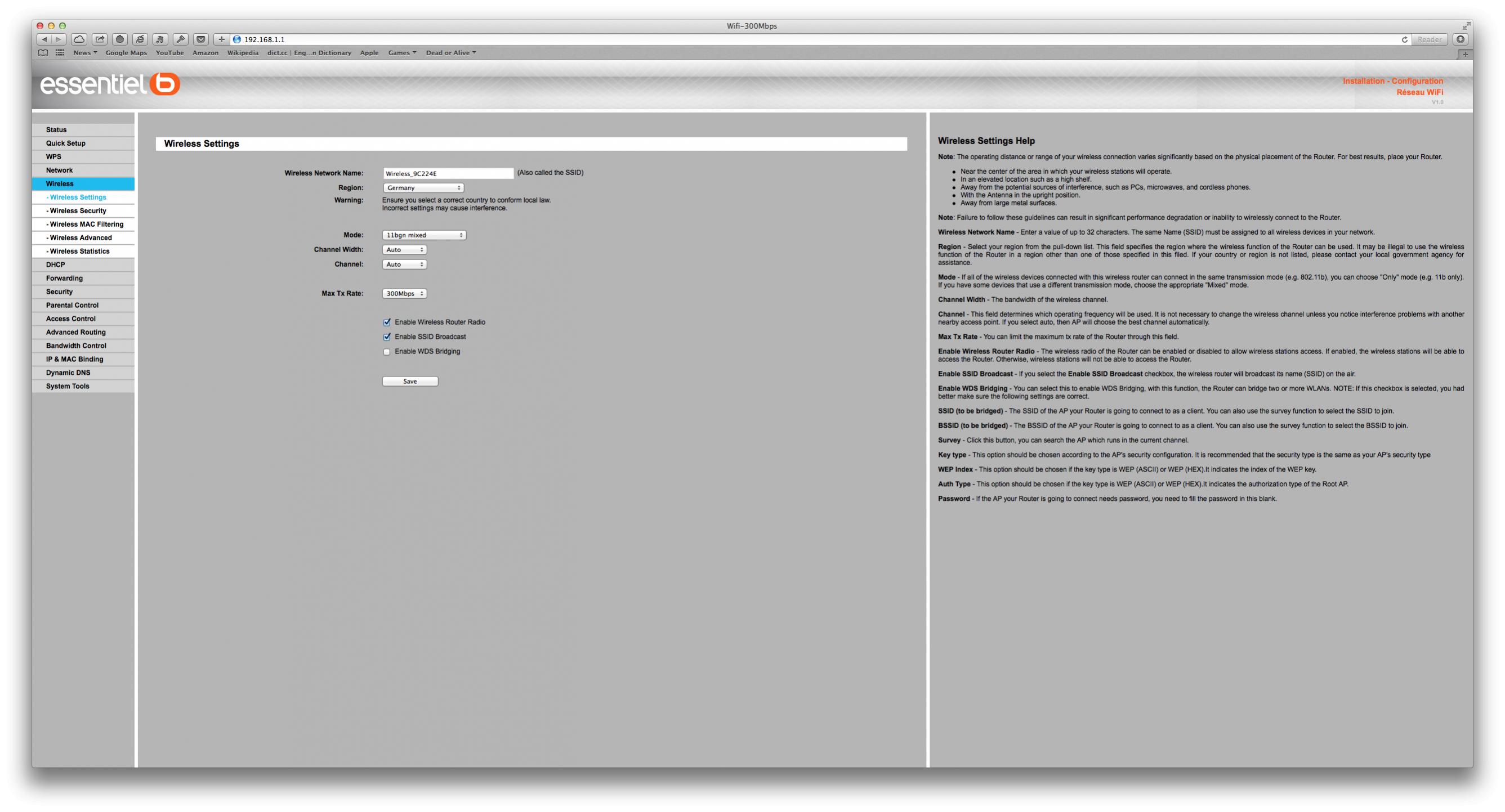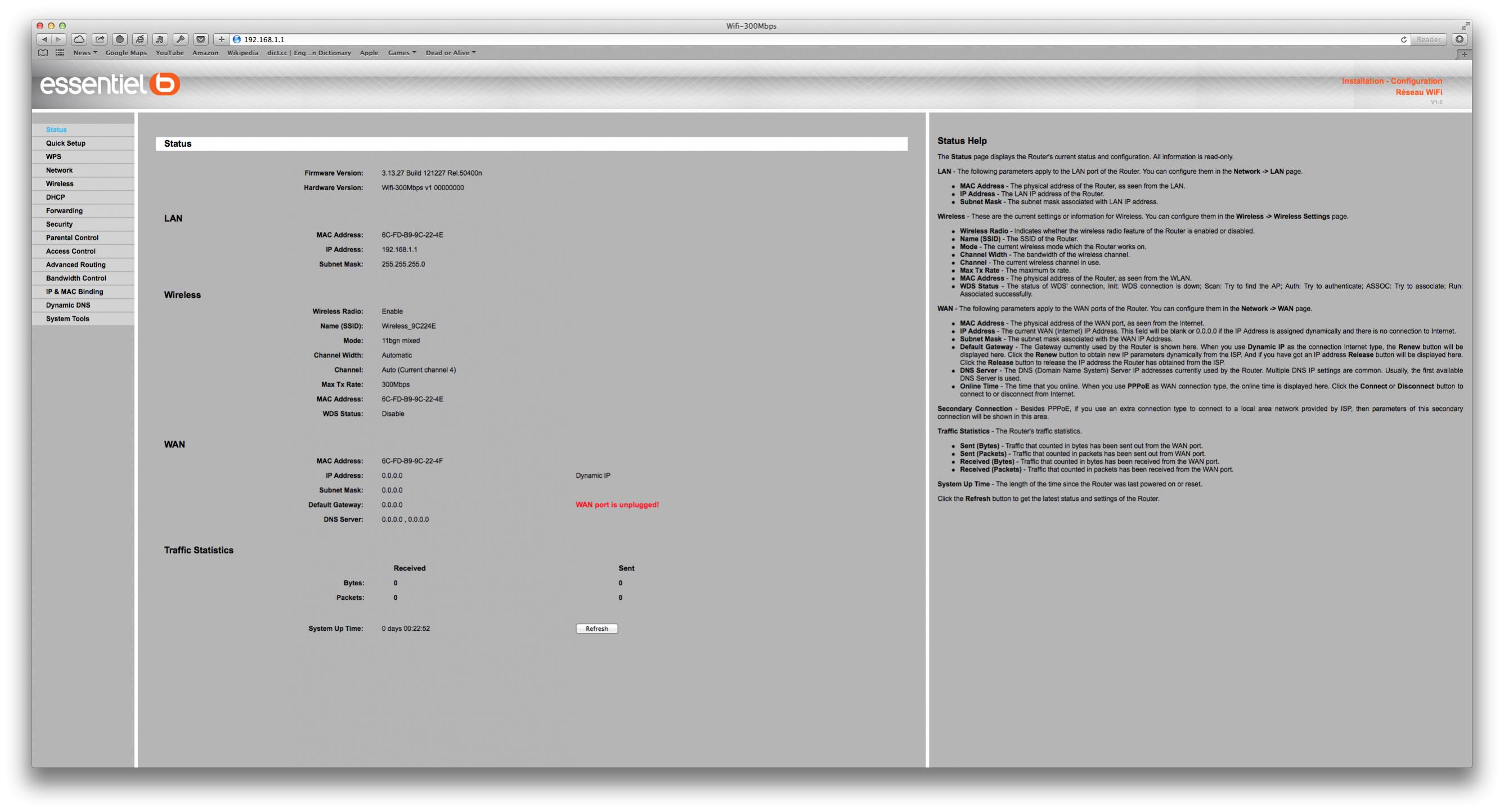 Den Router hatte ich auf einer längeren Dienstreise in Frankreich gekauft. Das Menü kann dem entsprechend nur in Französisch oder Englisch gestellt werden.