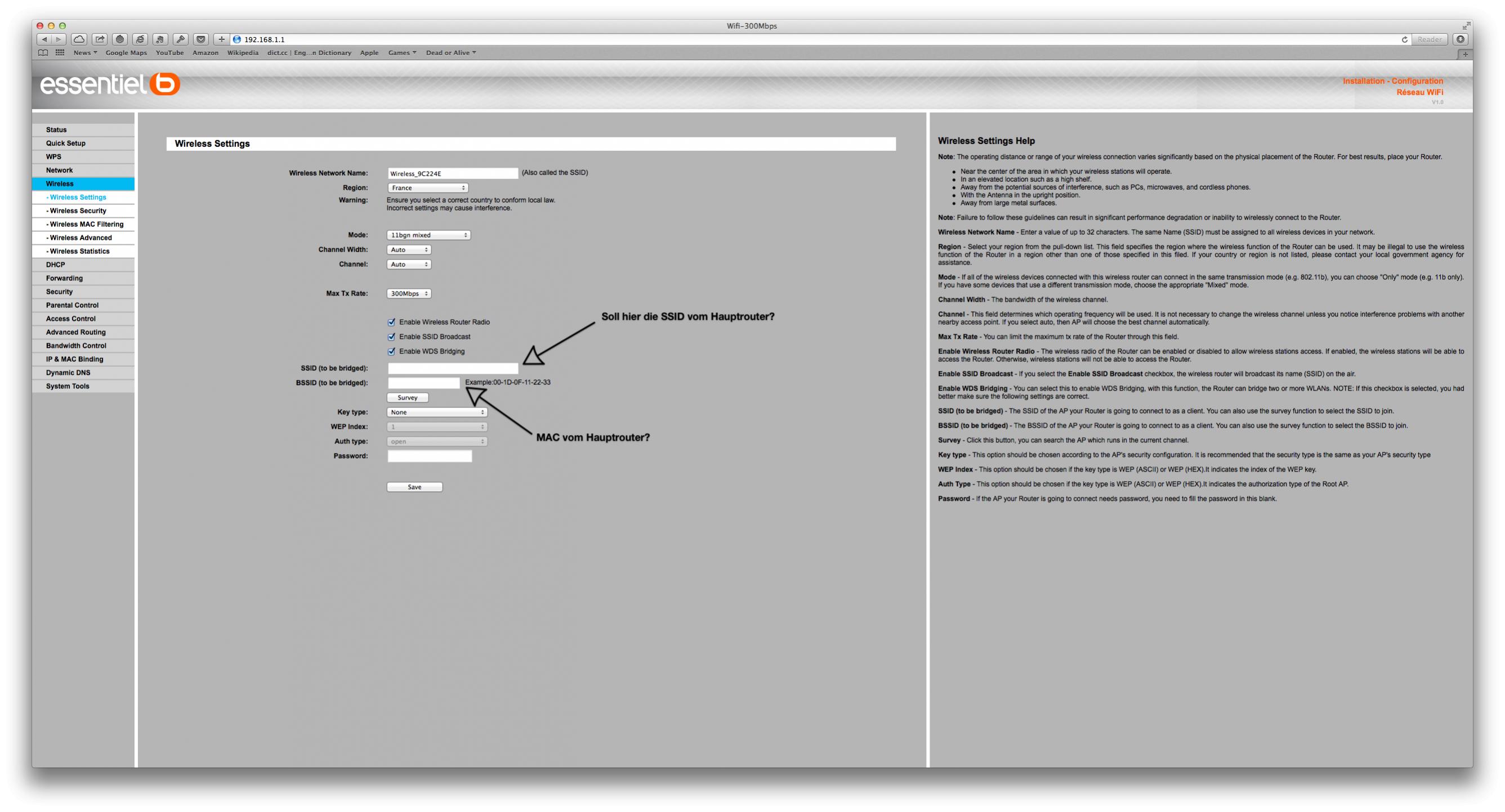 ich habe ein Problem. Ich möchte mit dem Essentiell b Wifi 300Mbps Router von der ersten in die zweite Etage verstärken, bzw. rebelten. Ich bekomme es leider überhaupt nicht hin. Normal kenne ich es so, dass es einen Punkt im Wireless Bereich gibt wo die Repeater Funktion ist und dort den Namen des zu verstärkenden WLAN's eingetragen wird. Hier finde ich gar nichts in die Richtung. Im Internet habe ich gelesen das die MAC Adresse, IP und sonst was alles eingetragen werden soll. Das übersteigt aber meine Kompetenz als Laie. ^^