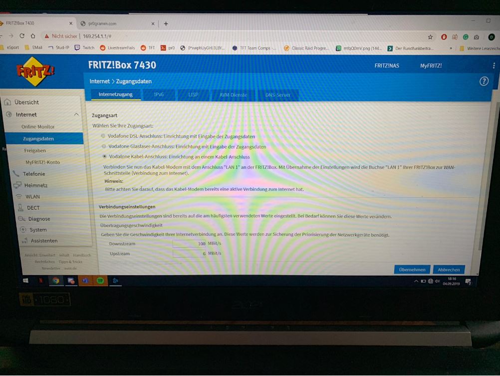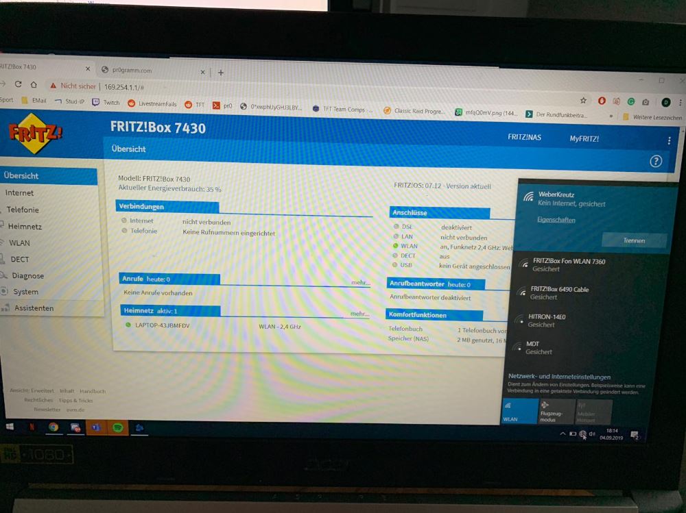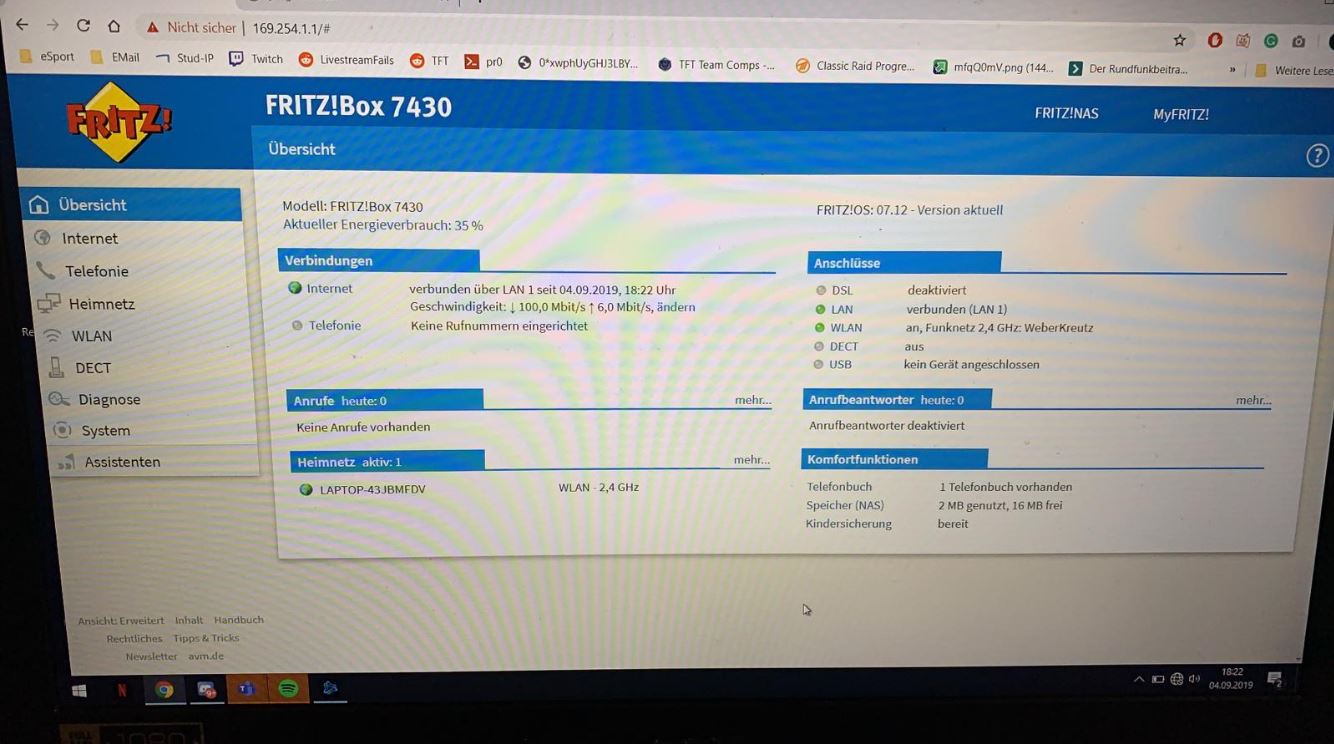 Die 7430 beherrscht jedoch nur Wi-Fi 4 im 2,4GHz Band. Hohe Übertragungsraten kannst Du nicht erwarten.