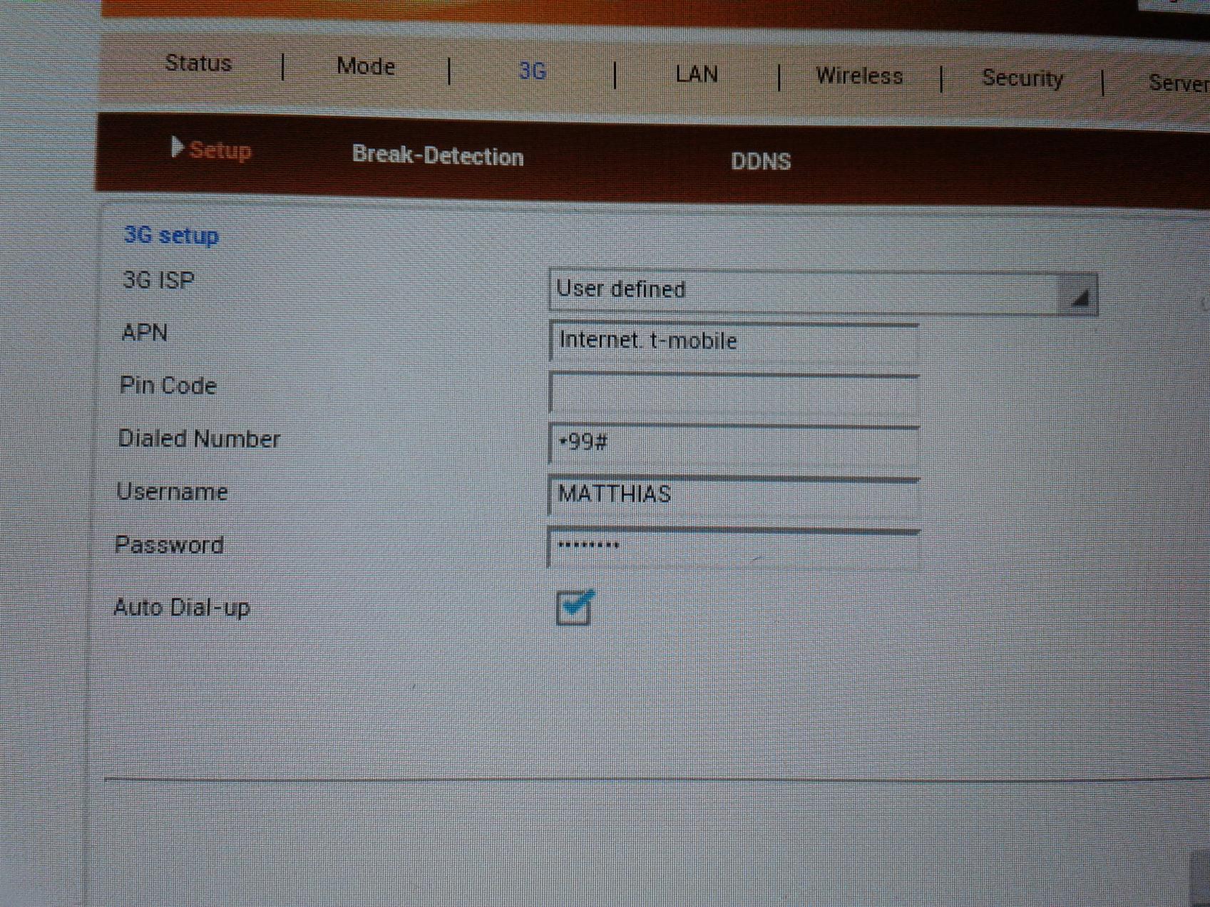 Ich betreibe diesen Router im UMTS Modus!Später möchte ich noch ein LAN Kabel zu einen PC herstellen!