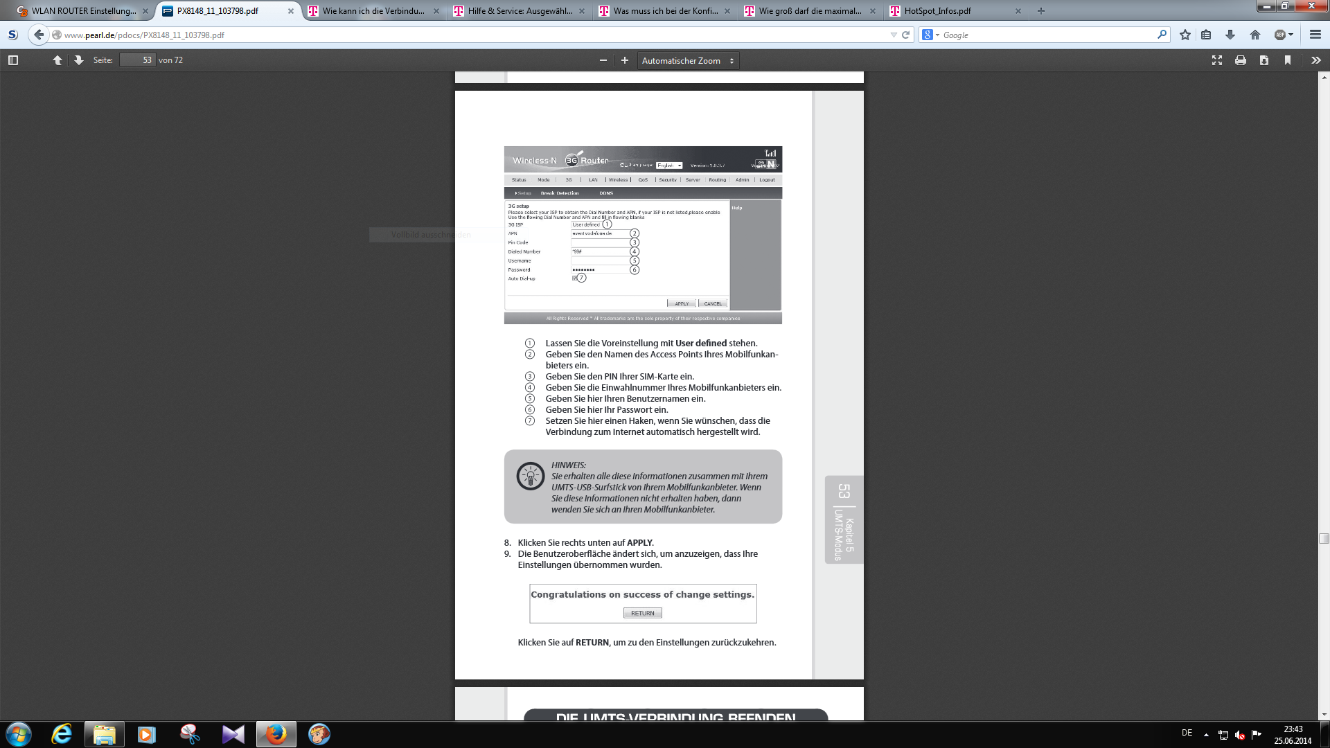 Die nächsten Versuche brachten mich auch nicht groß weiter,da nach der Anleitung des ROUTERS kein bENUTZERNAME UND PW drin steht und ich jedesmal wieder meinen Namen drinnen habe,bei Versuche mit KLARMOBIL.Selbst komme ich auch nicht mehr über TELEKOMSTICK nicht mehr rein oder hat das TABLET einen Schaden,wenn ich auf Apply gehe,kommt kurze Verfärbung des Button kurzzeitig und es passiert nichts weiter.