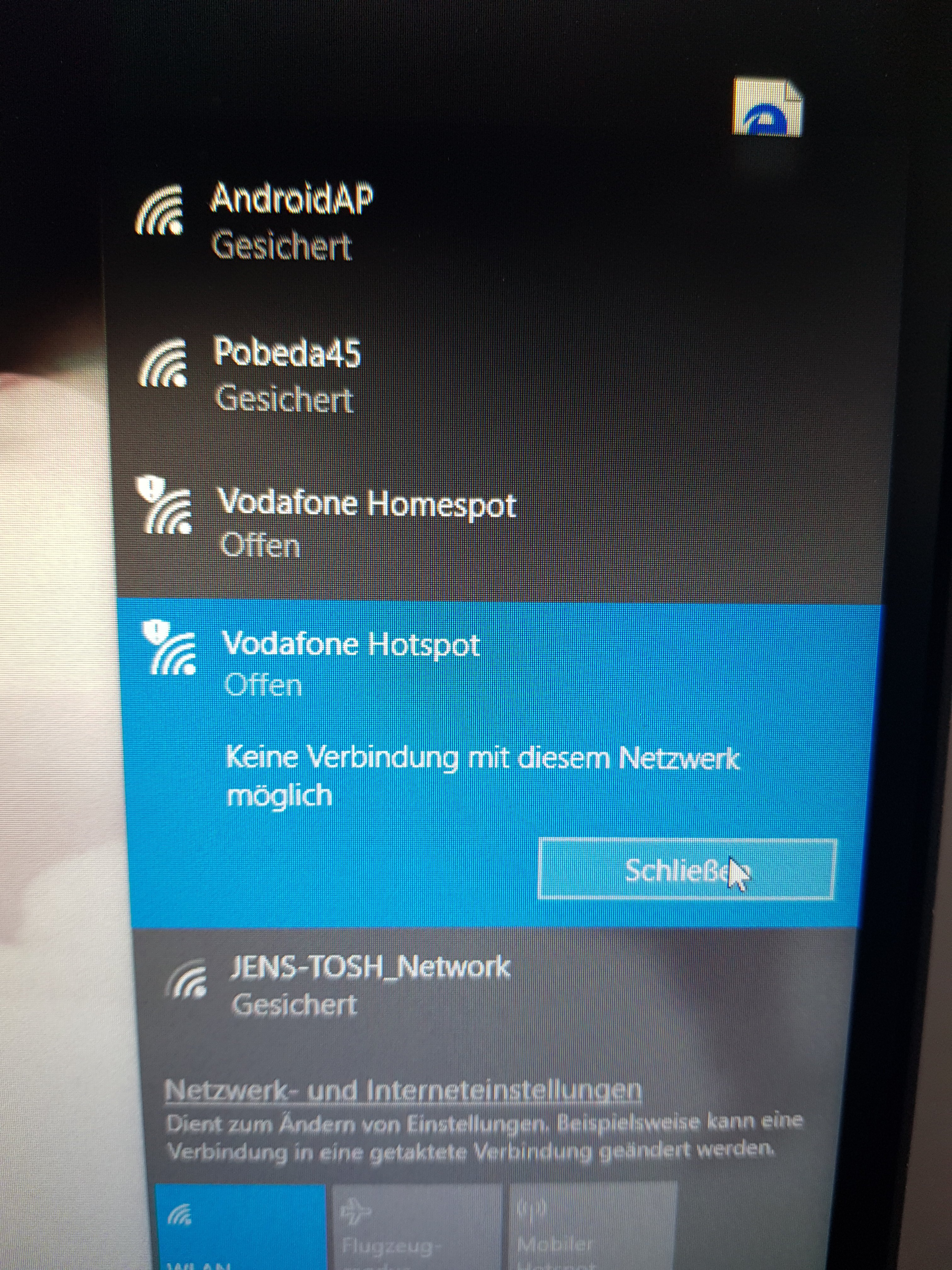 Ah Sry ja habe ich ganz oben. Ergebnis ist aber dasselbe. Hatte es danach mit den offenen vodafone Hotspots versucht. Fehlermeldung immer diesselbe.