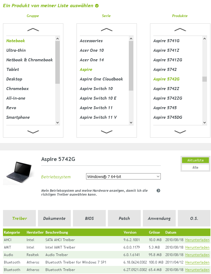 Auf der Webseite von Acer --> http://www.acer.de/ac/de/DE/content/drivers und entsprechendes auswählen