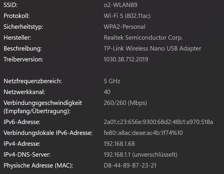 Die Ip-Zuweisung und DNS-Zuweisung ist auf automatisch gestellt.