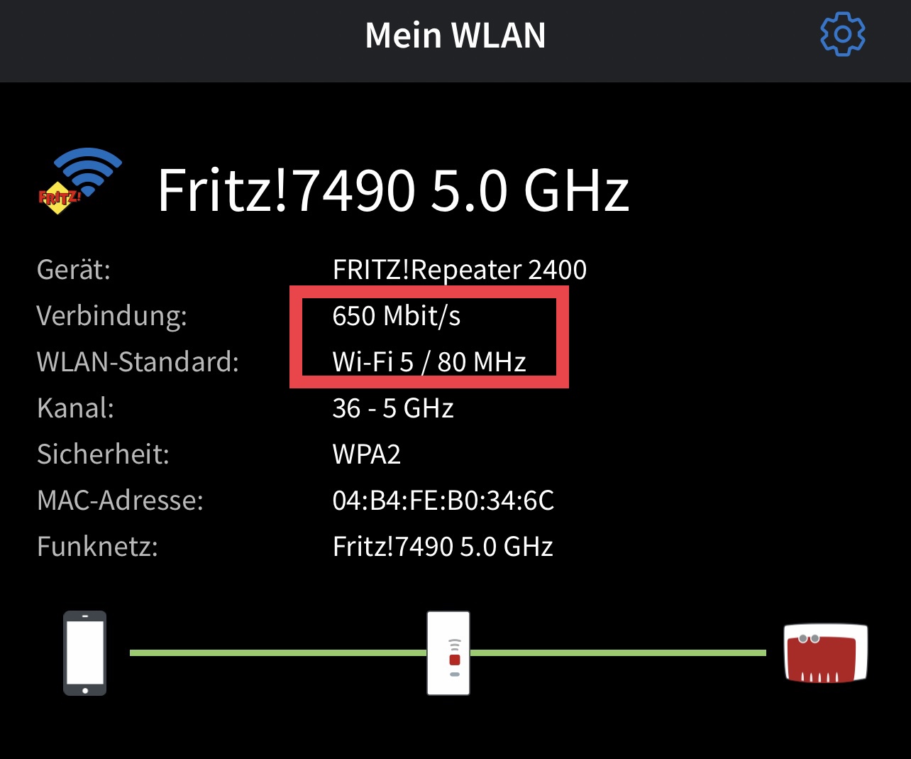 650 Mbit/s brutto ( iPhone ein Raum genau darüber )
