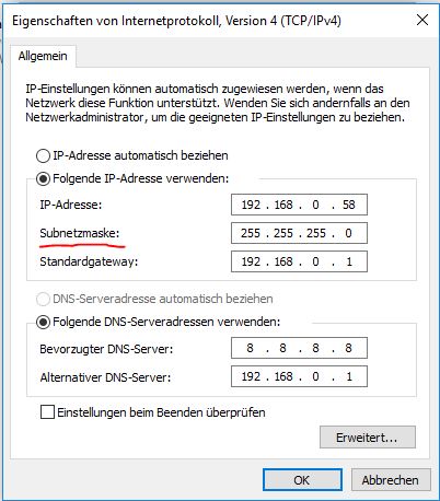 Subnetzmaske . . . . . . . . . . : 255.255.255.0