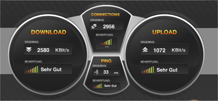 habe eigentlich eine 20 Mbit Leitung davon kommen aber nur effektiv 3 mbit an. Habe kostant im Fritz Wlan Menu 54 Mbit als Anzeige.