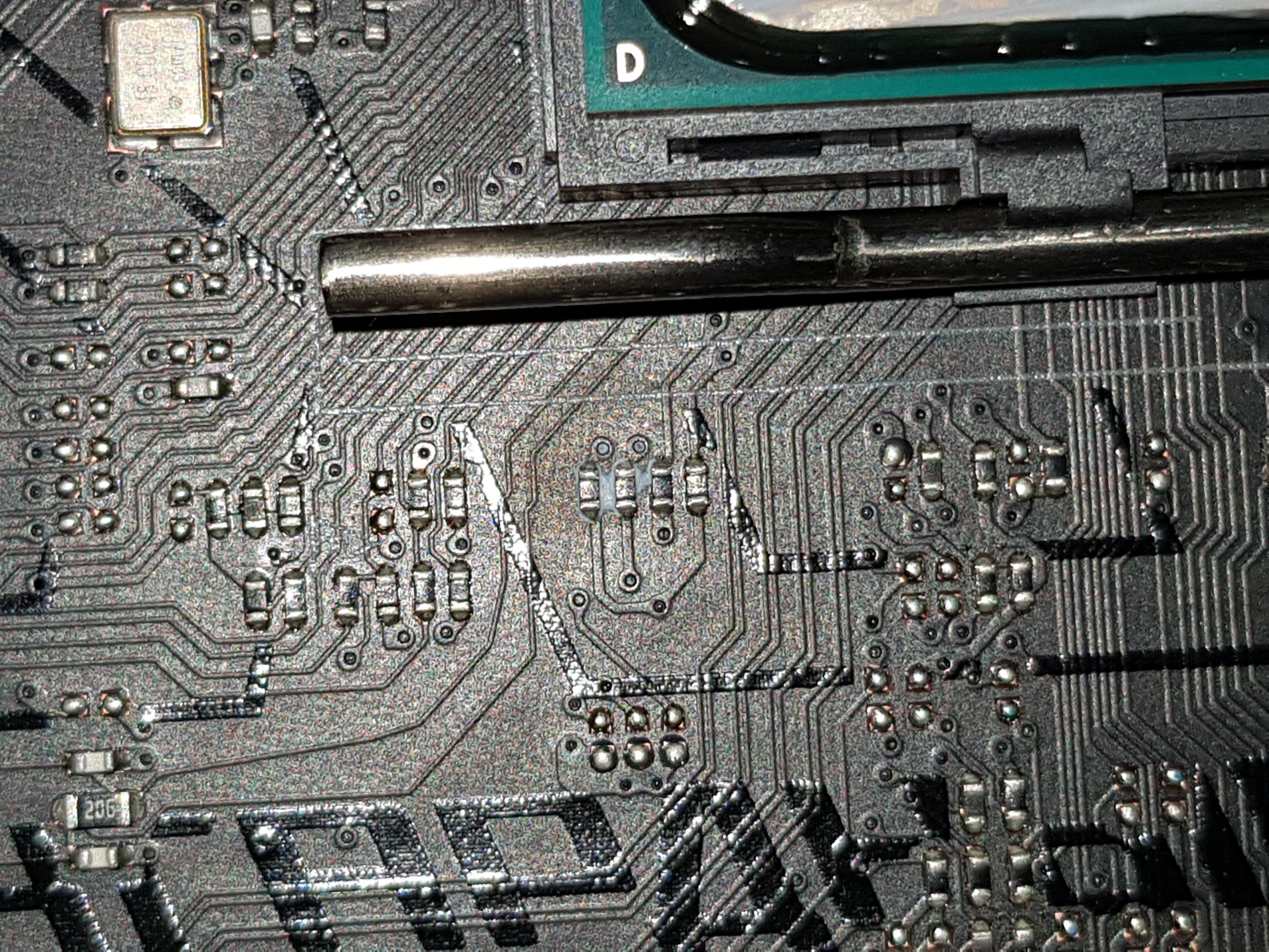 ich habe bei meinem neuen Mainboard übergangsweise den mitgelieferten Ryzen Kühler verwendet, weil mein Kühler noch nicht da war. Beim abnehmen des Kühlers ist, durch blöden Zufall und weil "reichlich" WLP unten am Kühler war, etwas aufs Mainboard getropft. Und ich bekomms nicht vollständig ab