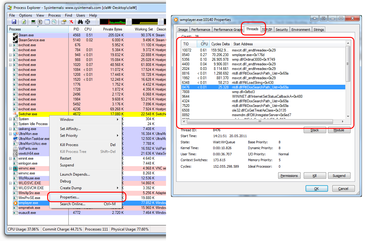Das Problem: Wenn ich mit dem Windows Media Player 12 Musik (z.B. MP3) oder Webradio abspiele, steigt meine CPU-Auslastung auf über 50%. Vor der Neuinstallation lag diese normal so bei 5-10%. Merkwürdigerweise tritt das verhalten nicht bei Videodateien auf, nur bei Audiodateien. Laut Taskmananger ist es auch tatsächlich er WMP12 der so viele Ressourcen frist. Blöd ist halt, dass ich so fast unmöglich neben dem Zocken (vor allem SC2, da sehr CPU-lastig) Musik hören kann. Google spuckt einiges zu dem Thema aus, aber keiner weis woran es liegt, oder wie man das Problem behebt