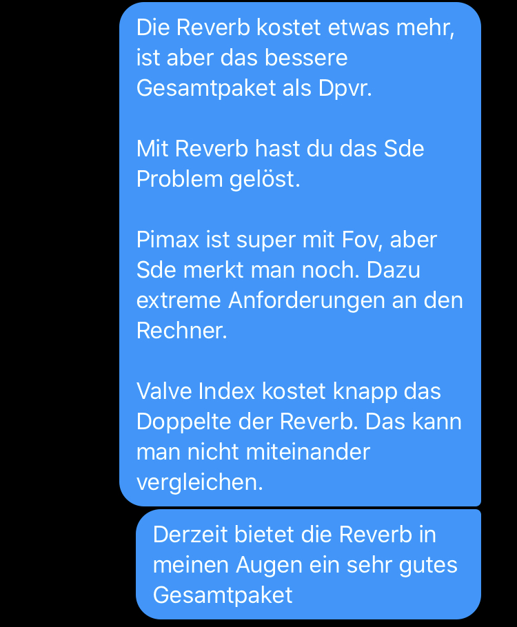 Genau so isses, dann lass uns mal über deine DPVR4k, Hp Reverb und Pimax Erfahrungen sprechen. Schiess los ...