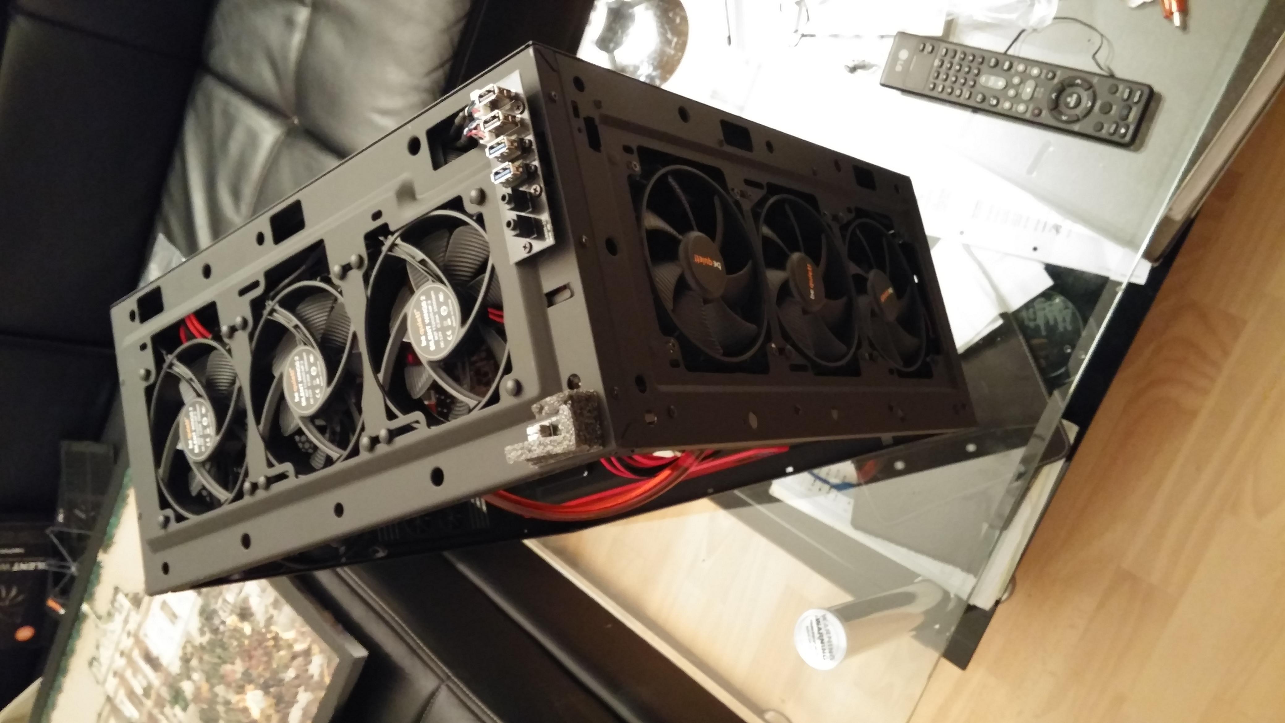 Variante 2: radiator vorne rein pustend sowie einen Lüfter rein pustend, sowie zwei Lüfter im Deckel die raus pusten und der am Heck.