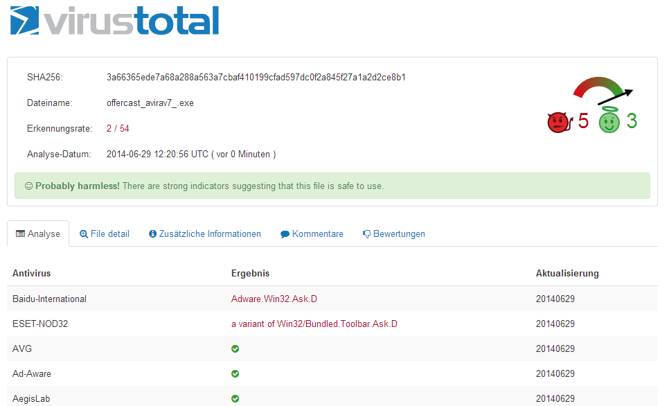 Cool auch in meinem Fall findet zumindest der Online Scanner einige potenziell unerwünschte Sachen, welche ich aber gekonnt ignoriere, weil diese erwünscht sind.
