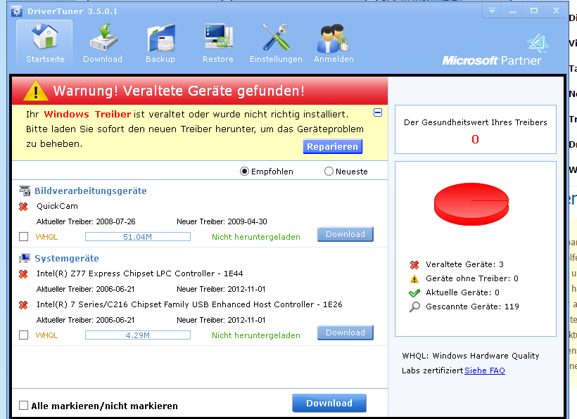 Ich habe die Windows 10 Pro Technical Preview. Und sah bei Geräte manger das paar treiber mit diese Dreiecke sind, hab dann Driver Tuner Runtergeladen, und weiß leider nicht von wo ich die aktuellsten Treiber finde..