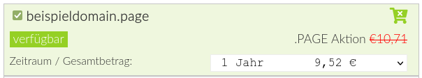 ich suche nach einem Anbieter bei dem ich günstig eine .page Domain registrieren kann. Kennt ihr dafür einen guten Anbieter? Falls noch ein kleines Mail-Paket dabei ist, ist das auch ok, primär geht es aber erst mal um die Registrierung. Den günstigsten Preis den ich bisher gefunden habe, war ca. 38€ pro Jahr.