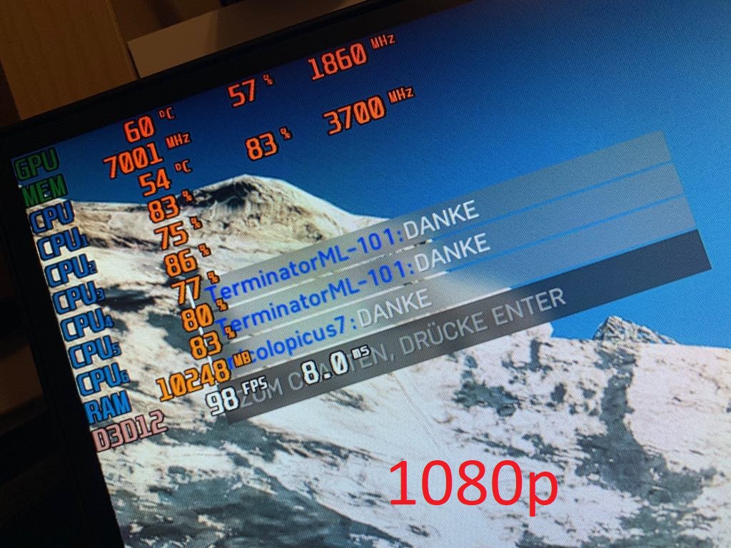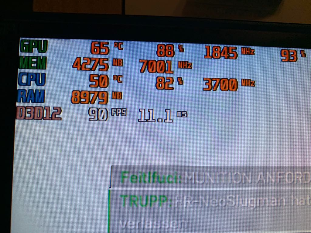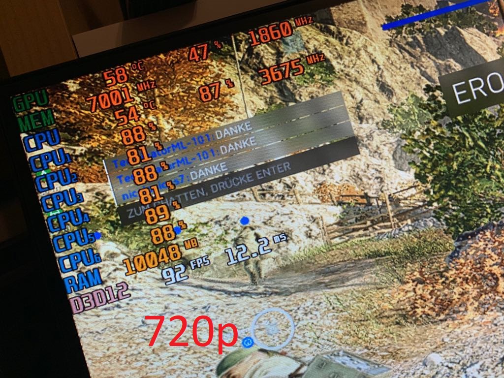 1. Problem: Ich bin der Meinung, dass mein System mehr FPS liefern sollte, als es eigentlich tut. In BF5 hab ich auf "Medium" einstellungen um die 90-100 FPS. Der Riva-Tuner gibt auch an, dass sowohl CPU als auch GPU nicht vollständig ausgelastet sind. Zwar liegt die GPU in der Regel bei 80-90%, aber .. naja.. da wär ja auch noch Luft nach oben. Denn mit 20% mehr würdn ja auch 100 FPS ganz schnell zumindest 120 werden. Tuts aber nicht. Screenshots der Auslastung befinden sich anbei. Im Spiel ist DX12 aktiviert, Einstellungen sind Individuell wie gesagt eher auf Medium und Future Frame Rendering ist aus. Zusätzlich habe ich immer wieder klein "Ruckler", in denen die Framerate auf 30-50 FPS absackt. Jedoch nur für .. naja nicht mal eine halbe Sekunde, aber so, dass mans merkt und es nervt.