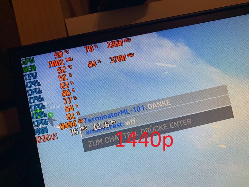 Falls noch Fragen sind, immer gerne her damit... Ich habe mein System mit andren auf Youtube verglichen, und die haben auf Ultra so viele FPS wie ich, auf Medium sollte ich damit eigentlich stabil die 144 fps hinbekommen... auch auf WQHD. Da aber weder Prozessor noch GPU auf voller Auslastung laufen, weiß ich nicht, was mich beschränkt und deshalb bin ich hier.