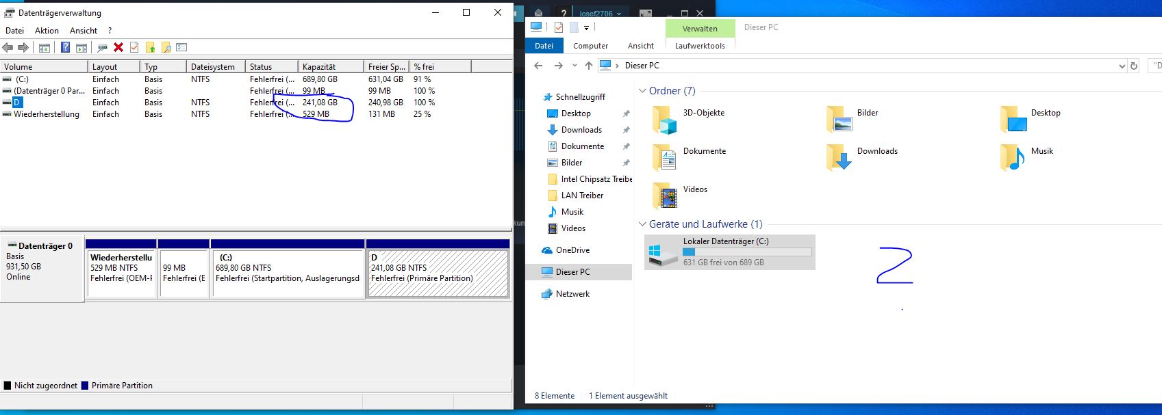 Jetzt ist aber nur die 700 GB sichtbar, die anderen 300 GB sind weg... wahrscheinlich habe ich bei der Installation einen Fehler gemacht.