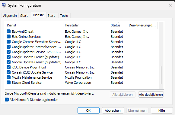Genau das ist der erste Schritt.Miyatoro schrieb:Ich deaktiviere gerade so ziemlich alles drittanbieter mäßgies.