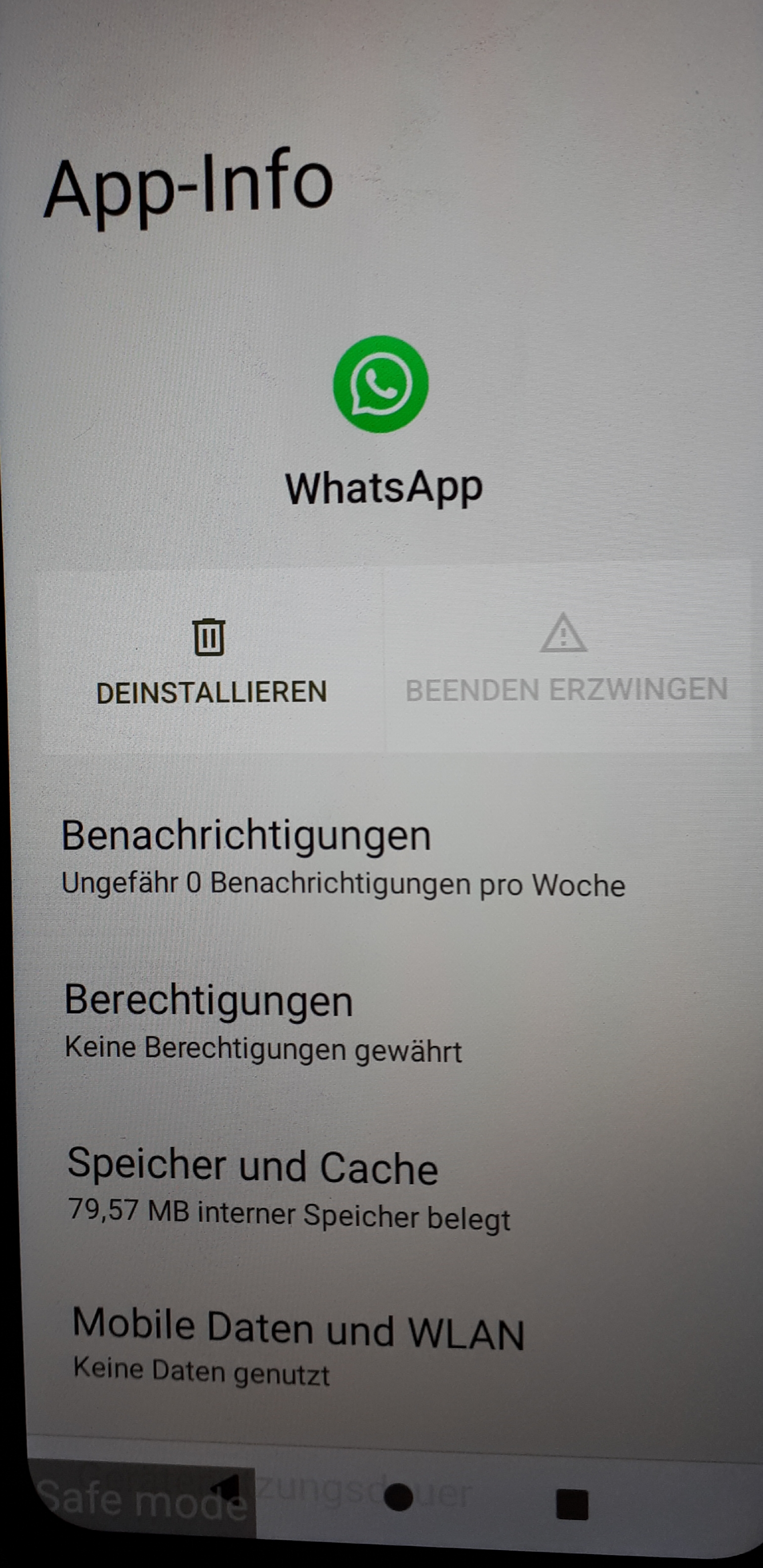 Unter Einstellungen --> Apps -> App Info erscheint WhatsApp. Allerdings nicht in dem Bereich des Smartphones, den ich erreiche, wenn ich auf dem Desktop vom unteren Rand nach oben wische. Und dort müsste WhatsApp doch sein, um es zu nutzen, da ich es unter Einstellungen -> Apps --> App Info zwar erscheint, ich es aber dort nicht öffnen, sondern nur "Deinstallieren" oder "Beenden erzwingen" auswählen kann.