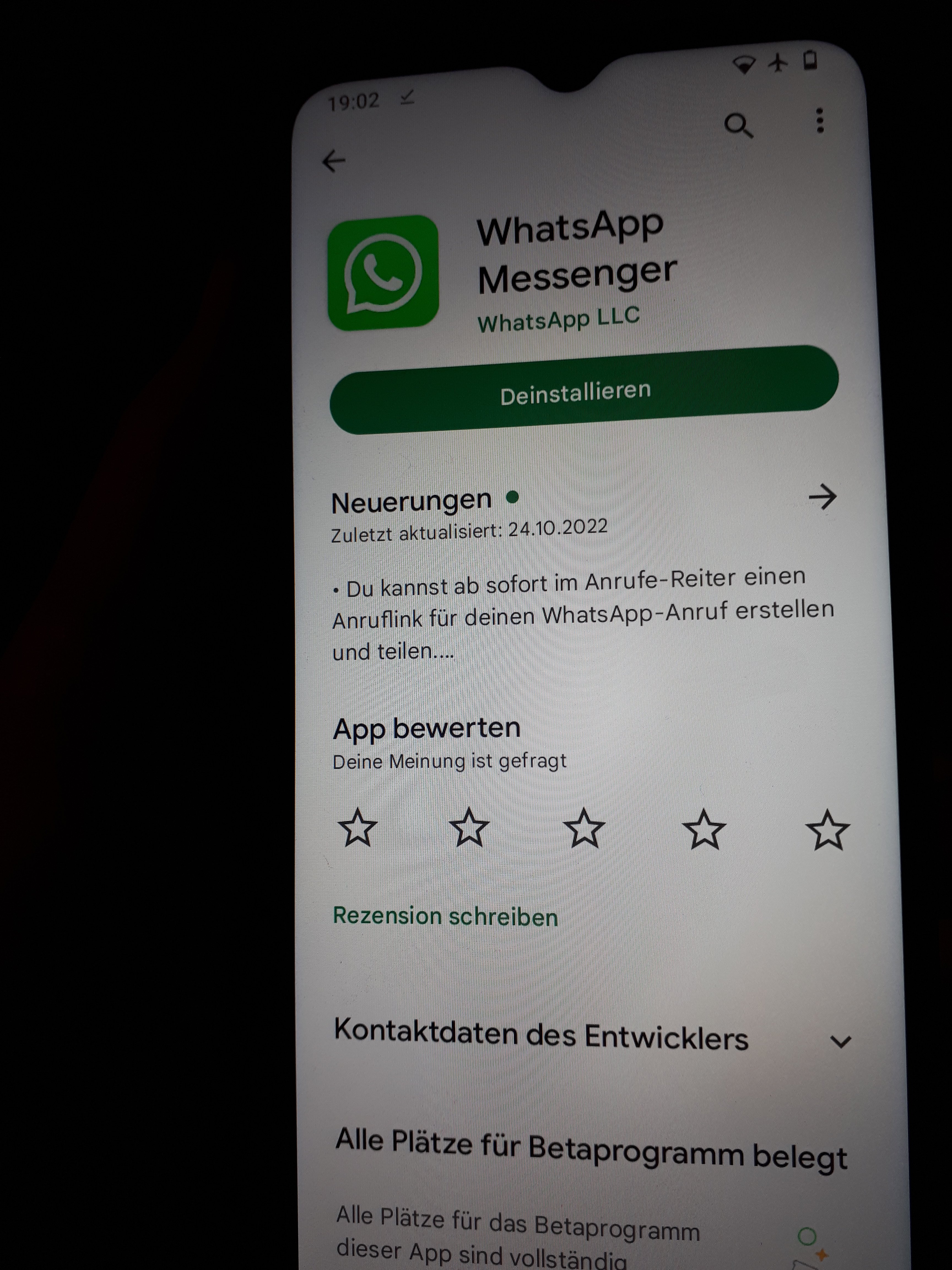 Hallo siggi%%44, WhatsApp habe ich über den Playstore aufgerufen. Dort steht allerdings bei mir nur "Deinstallieren" und nicht "Öffnen" (s. Screenshot).