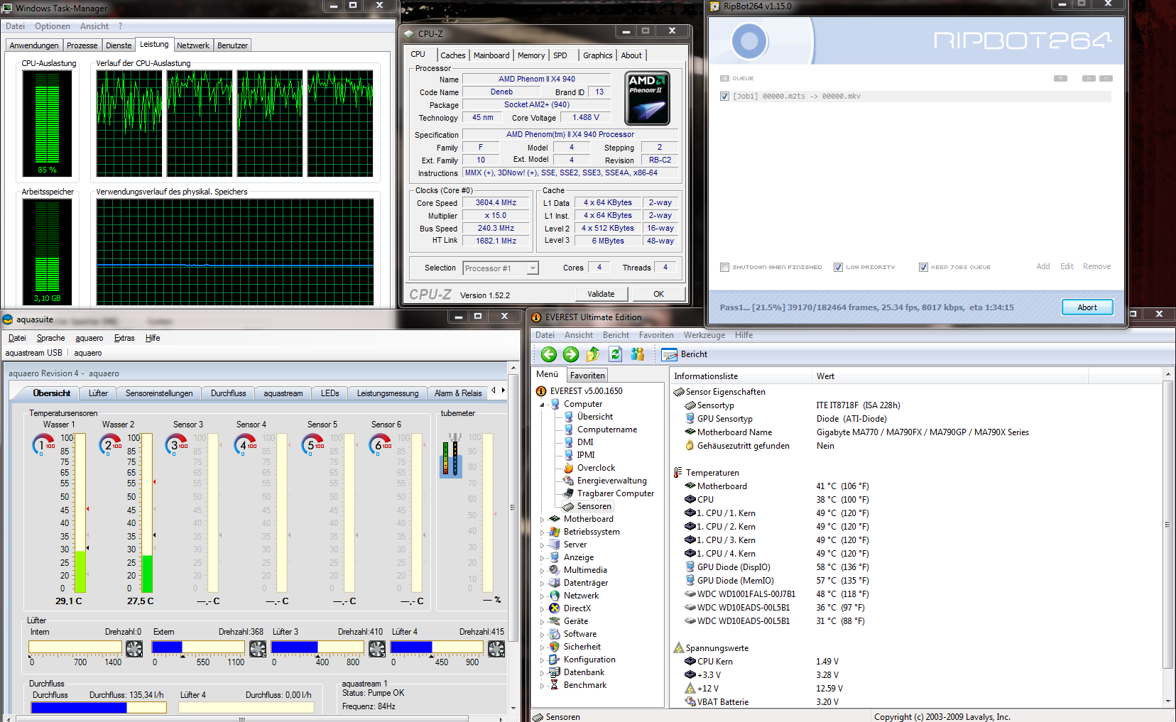 Angenommen man hat eine CPU, eine GPU, NB und SB wassergekühlt.