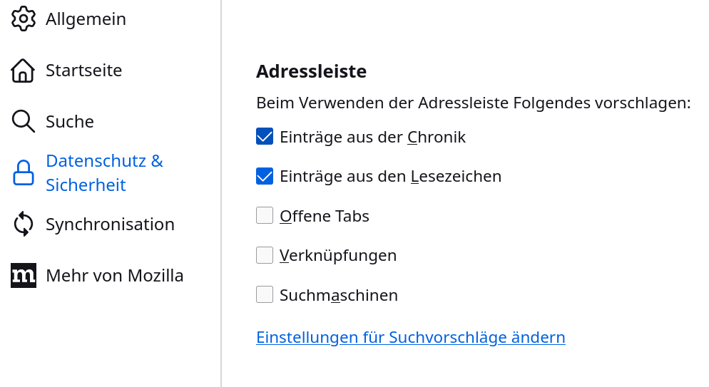 user_pref("browser.urlbar.quicksuggest.enabled", false);