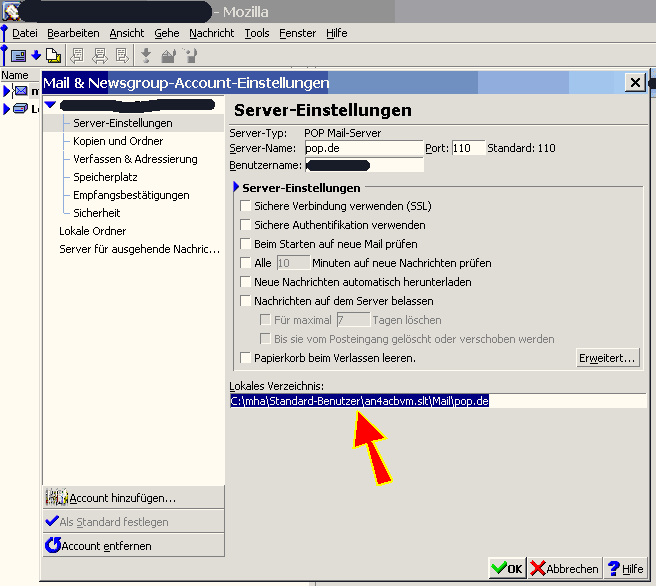Im Anhang habe ich 2 Bilder eingefügt, wo Du bei Mozilla 1.6 den Mail-Ordner bestimmen kannst. Was Du bei dort zuerst siehst, ist Dein jetziger Ordner. Den kannst Du woanders sichern und später zurückspielen, oder der Neuinstallation