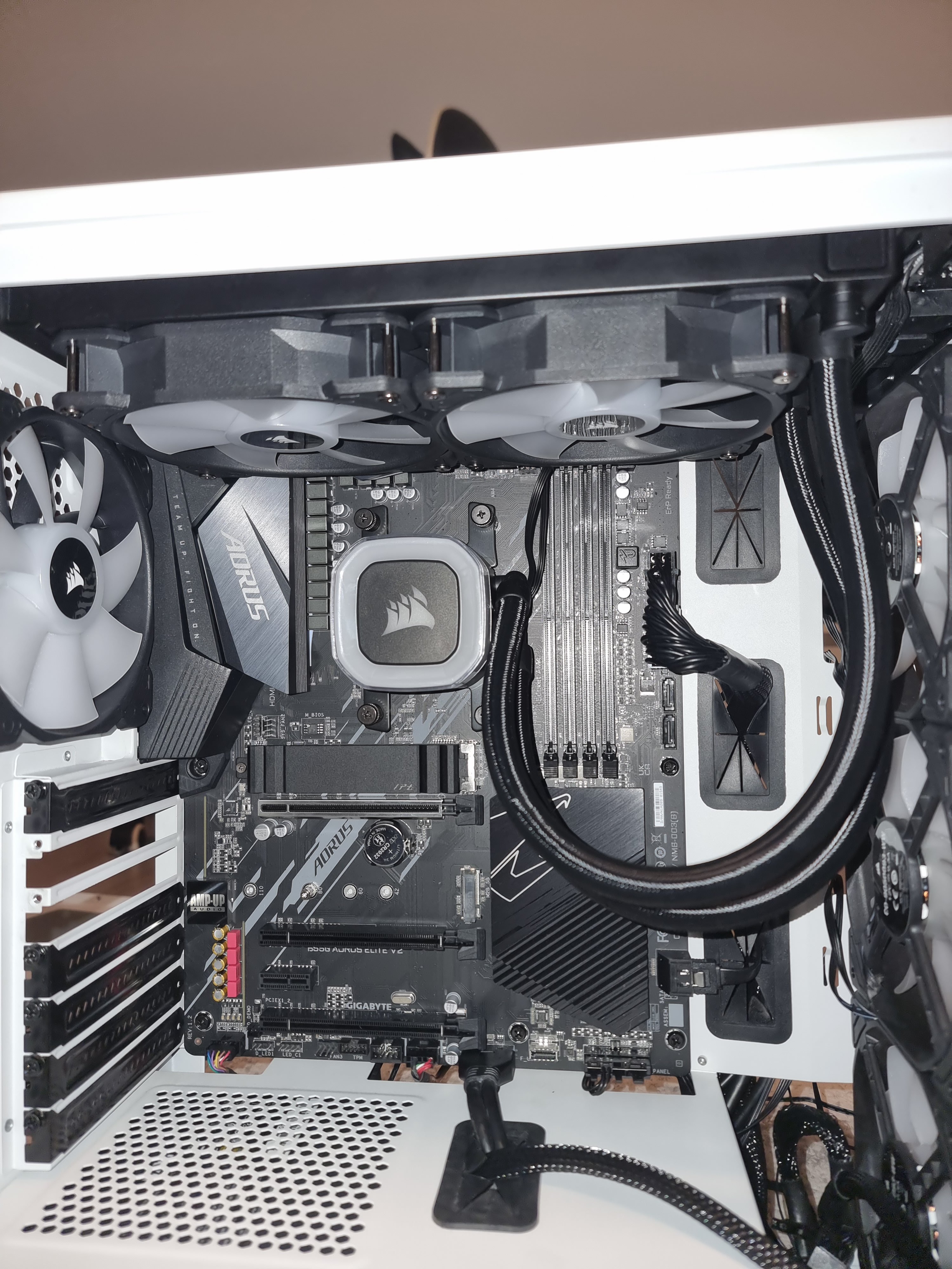 Du hast die AiO also bereits verbaut. Es könnte problematisch werden, wenn sich der Radiator nicht über dem AiO-Kühler befindet. Bitte zeig mal ein Foto, wo sowohl AiO-Kühler als auch AiO-Radiator zu sehen sind.