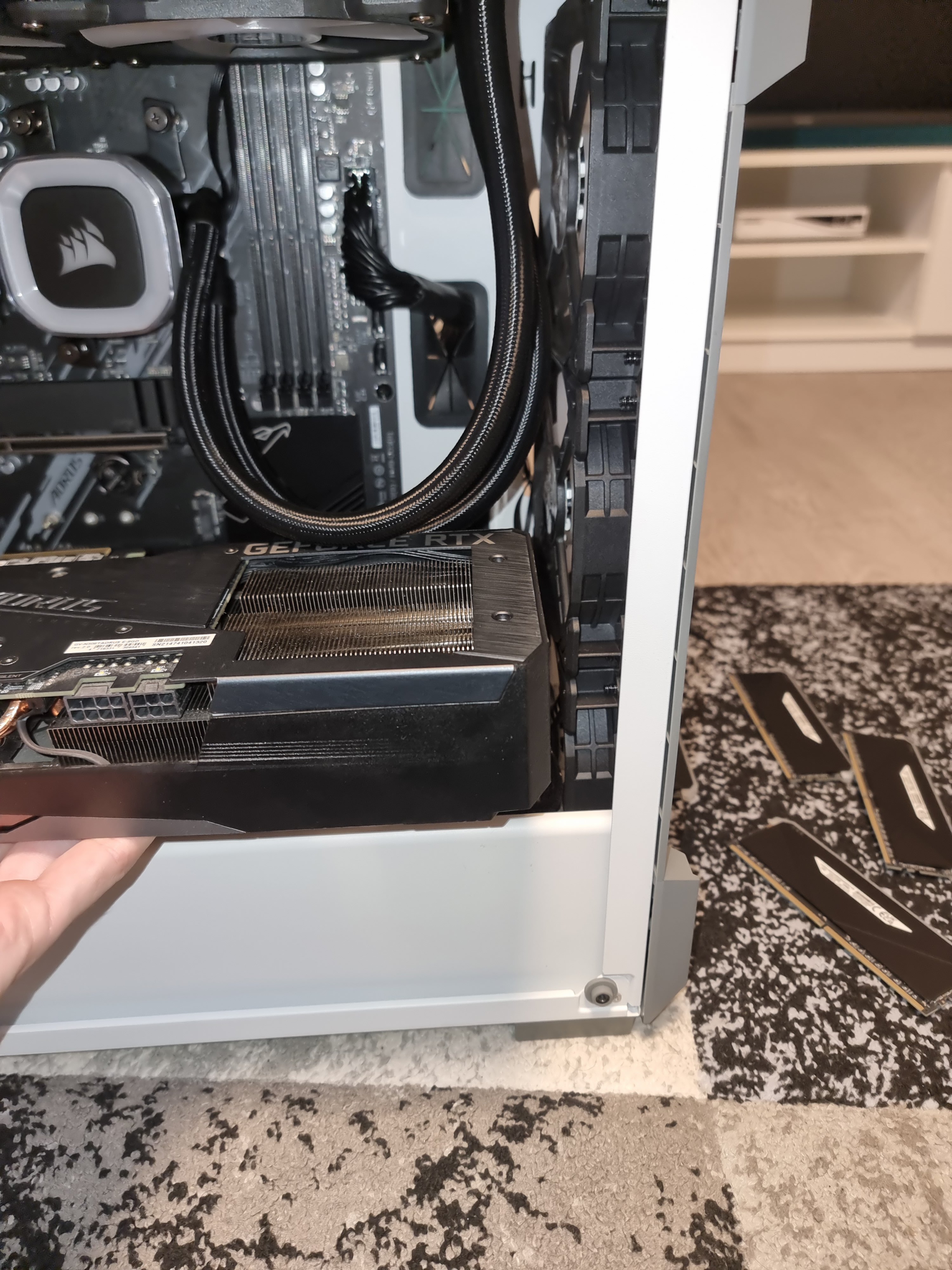 Ja da sind bereits Lüfter aber wenn ich den radiator noch dazu baue geht die graka nicht rein, hab eine Aorus 3060TiCelticon schrieb:Warum nicht so wie bei Bild 5 --> https://www.corsair.com/de/de/p/pc-...ss-mid-tower-smart-case-black-1-cc-9011190-ww