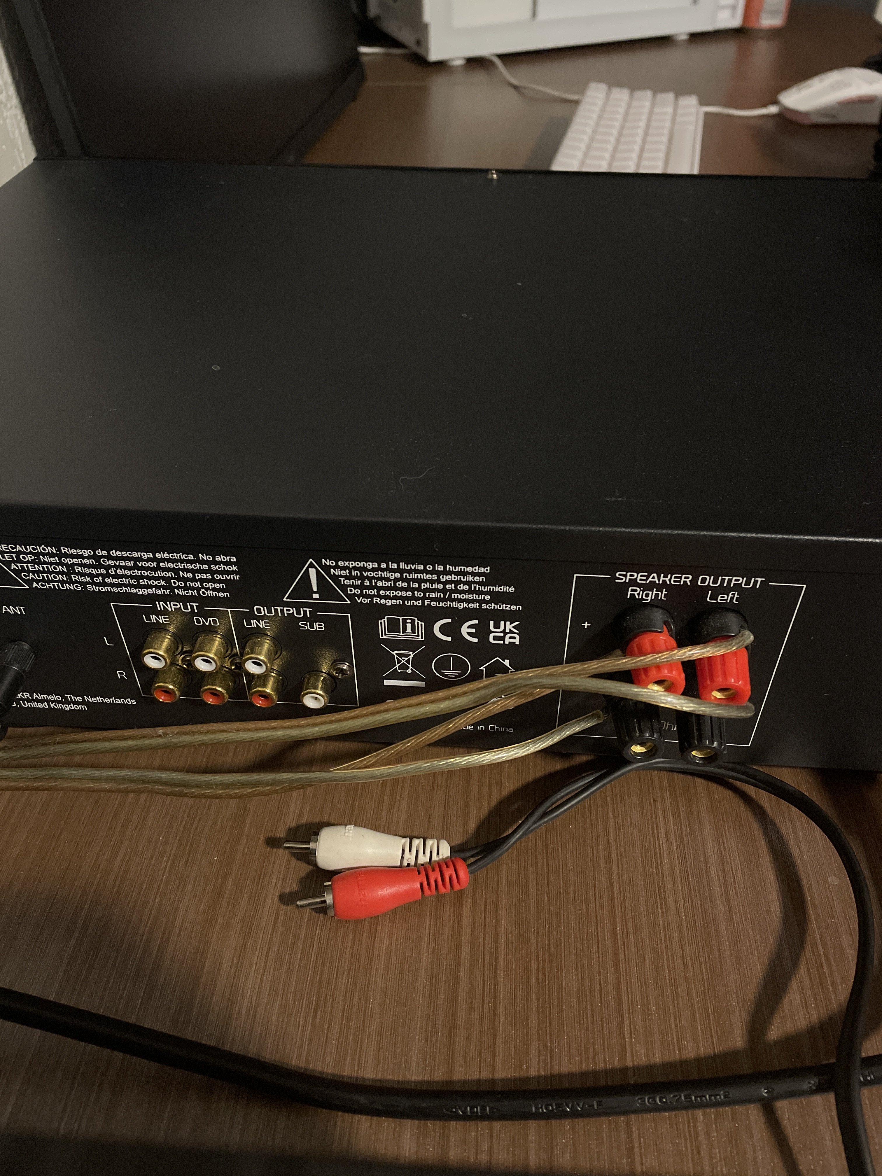 Ich hab alles normal angeschlossen über Cinch Kabel, weiß auf weiß, rot auf rot.