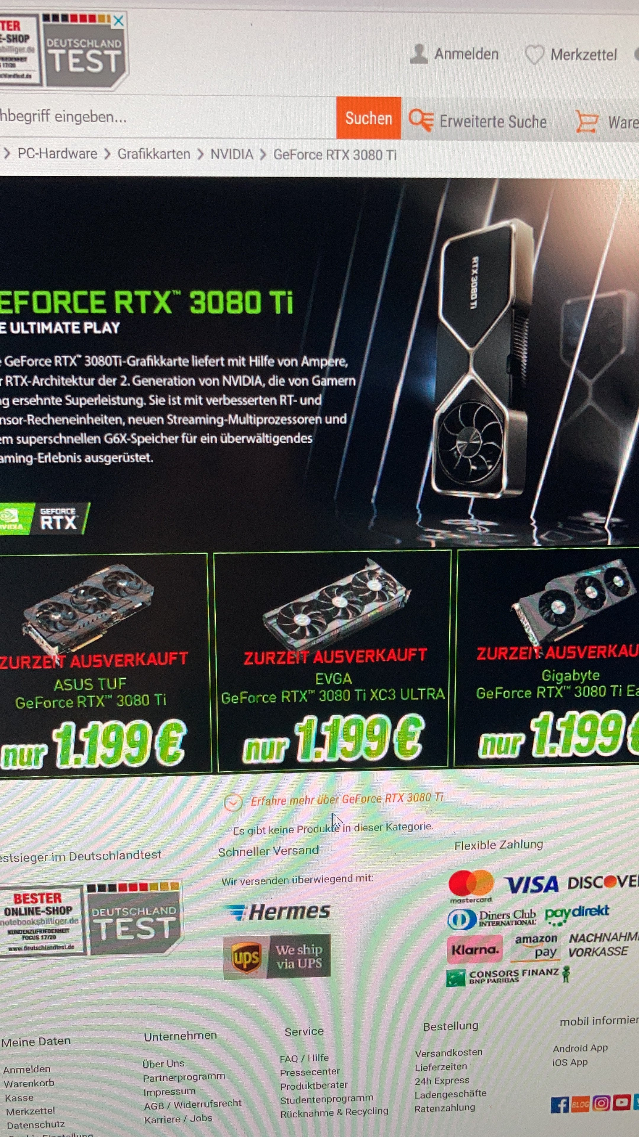 Hab vor zwei tagen meine beiden 1080Ti´s für einen stolzen Preis verkauft und hätte darauf gehofft heute ne 3080Ti zu ergattern.